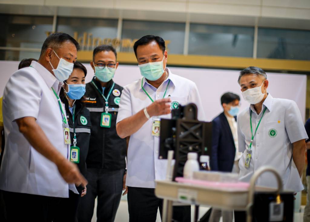 วันที่ 8 มิถุนายน 2564 นายอนุทิน ชาญวีรกูล รองนายกรัฐมนตรี และรัฐมนตรีว่าการกระทรวงสาธารณสุข พร้อมคณะผู้บริหารกระทรวงฯ ได้เดินทางไปตรวจเยี่ยมโรงพยาบาลบุษราคัม ที่อาคารชาเลนเจอร์ อิมแพ็ค อารีน่า เมืองทองธานี จ.นนทบุรี และให้กำลังใจผู้ปฏิบัติหน้าที่ นอกจากนั้น ยังได้ตรวจสอบระบบการดูแลผู้ป่วยแบบ Telemedicine ซึ่งเป็นไปตามมาตรการ New Normal