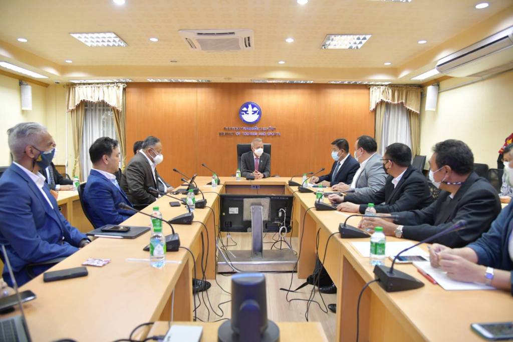 ต่อจากนั้น ในเวลา 13.30 น. รมว.พิพัฒน์ รัชกิจประการ พร้อมคณะฯ ประชุมหารือร่วมกับนายศักดาพร รัตนสุภา รองผู้ว่าราชการจังหวัดสุราษฎร์ธานี นายธีระพงศ์ ช่วยชู นายอำเภอเกาะสมุยและคณะ เรื่องการขอสนับสนุนวัคซีนป้องกันโรคติดเชื้อไวรัสโคโรนา 2019 อำเภอเกาะสมุย จังหวัดสุราษฎร์ธานี เพิ่มเติม เพื่อรองรับการเปิดรับนักท่องเที่ยวต่างชาติตามแนวทาง SAMUI Sealed Route Model ณ ห้องประชุม 2 ชั้น 3 กระทรวงการท่องเที่ยวและกีฬา