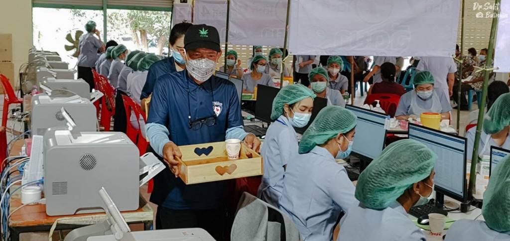 ทั้งนี้ คณะของนางณิชาภา ทิยารมณ์ กลุ่มเพื่อนกบินทร์บุรีและคณะ ได้ร่วมบริจาคเงิน ข้าวสาร ไข่ไก่ และผลไม้ เพื่อนำไปทำอาหาร ให้กับบุคลากรทางการแพทย์และประชาชนที่เดินทางมารับการฉีดวัคซีนในโอกาสต่อไป