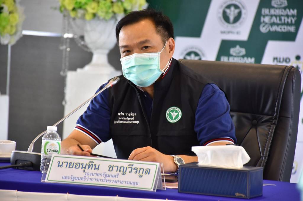รองนายกรัฐมนตรีและรัฐมนตรีว่าการกระทรวงสาธารณสุข พร้อมด้วยนายแพทย์เกียรติภูมิ วงศ์รจิต ปลัดกระทรวงสาธารณสุข และคณะผู้บริหาร ลงพื้นที่ติดตามความคืบหน้าการฉีดวัคซีนเพื่อควบคุมป้องกันการระบาดของโรคโควิด 19 พื้นที่ จ.บุรีรัมย์ พร้อมมอบอุปกรณ์ทางการแพทย์ อาทิ หน้ากากอนามัย N95 เจลแอลกอฮอล์ ให้แก่สำนักงานสาธารณสุขจังหวัดบุรีรัมย์ และส่งมอบกรมธรรม์ประกันภัยไวรัสโคโรนา 2019 จำนวน 10,196 กรมธรรม์ แก่บุคลากรทางการแพทย์ เพื่อเป็นการสร้างขวัญกำลังใจในการทำงาน ซึ่งได้รับการสนับสนุนจากภาคประชาชนของจังหวัดบุรีรัมย์