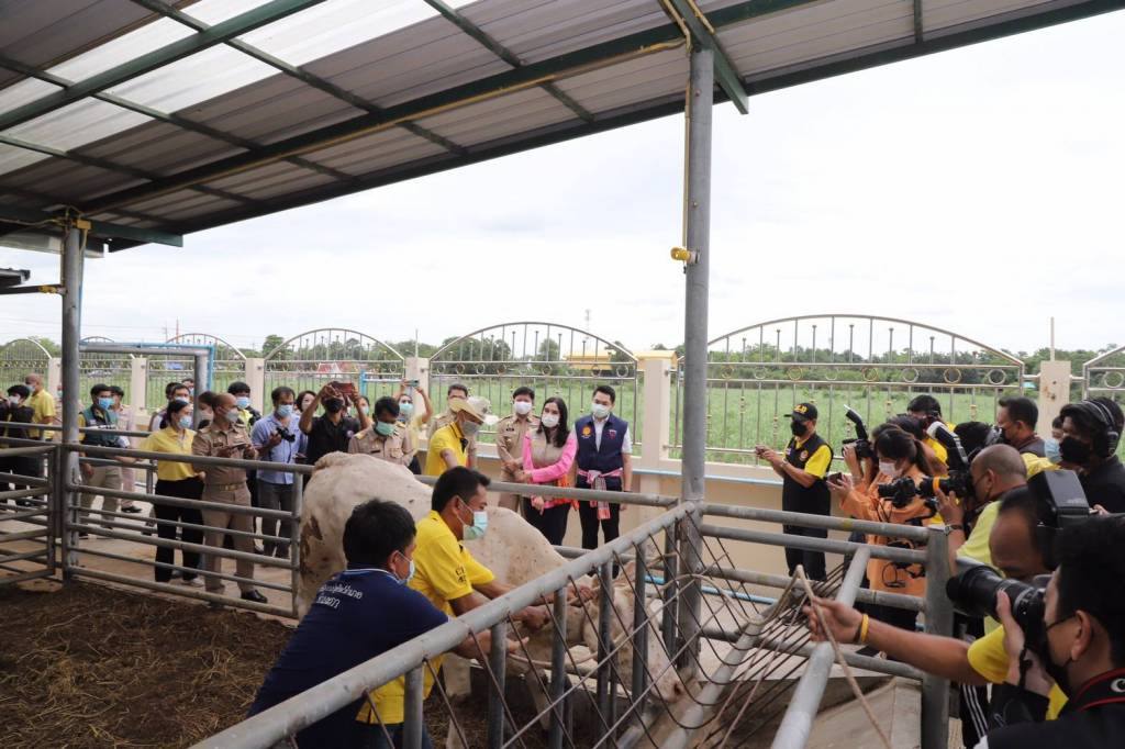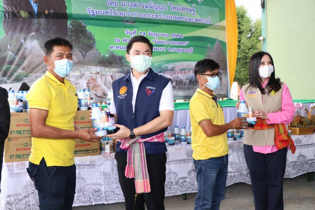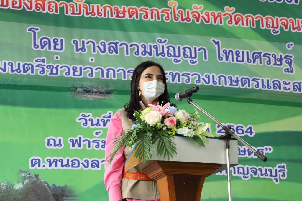 วันที่ 14 มิถุนายน 2564 นางสาวมนัญญา ไทยเศรษฐ์ รัฐมนตรีช่วยว่าการกระทรวงเกษตรและสหกรณ์ ลงพื้นที่ตรวจราชการตำบลหนองลาน อำเภอท่ามะกา จังหวัดกาญจนบุรี โดยมีนายยศวัฒน์ มาไพศาลสิน สมาชิกสภาผู้แทนราษฎรจังหวัดกาญจนบุรี ให้การต้อนรับ พร้อมด้วยหัวหน้าส่วนราชการ และพี่น้องเกษตรกร ทั้งนี้ รมช.มนัญญา ได้มีการมอบสิ่งของเวชภัณฑ์ น้ำยาฆ่าเชื้อ และยากำจัดแมลง ให้กับสมาชิกสหกรณ์ และเกษตรกร เพื่อป้องกันการระบาดของโรคลัมปี สกิน (Lumpy Skin)ในโคและกระบือ จำนวน 70 ชุด ทั้งนี้ได้ชมการสาธิตฉีดพ่นยาฆ่าเชื้อ เพื่อป้องกันการระบาดของโรคลัมปี สกิน (Lumpy Skin) ในโคและกระบือ ซึ่งทำการฉีดพ่นโดย เจ้าหน้าที่จากสำนักงานปศุสัตว์ จังหวัดกาญจนบุรี