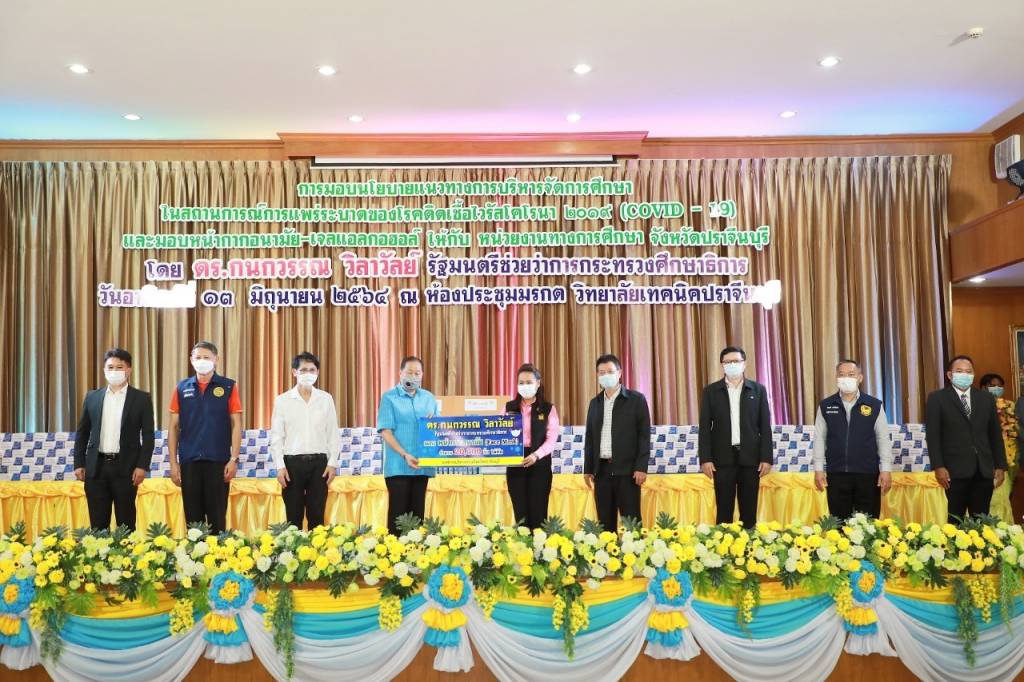 เมื่อวันอาทิตย์ที่ 13 มิถุนายน 2564 นางกนกวรรณ วิลาวัลย์ รัฐมนตรีช่วยว่าการกระทรวงศึกษาธิการ เป็นประธานในพิธีมอบหน้ากากอนามัยจำนวน 220,000 ชิ้น และเจลแอลกอฮอล์ล้างมือจำนวน 2,000 ชิ้น ให้กับสถานศึกษาในจังหวัดปราจีนบุรี และรับฟังความคิดเห็นในการจัดการศึกษาภายใต้สถานการณ์การแพร่ระบาดของโรคโควิด-19 โดยมี นายวรพันธุ์ สุวัณณุสส์ ผู้ว่าราชการจังหวัดปราจีนบุรี นายพงศ์พิศาล ชินสำราญ รองศึกษาธิการภาค 8 ปฏิบัติหน้าที่ศึกษาธิการภาค 9 นายณัทชัย ใจเย็น ศึกษาธิการจังหวัดปราจีนบุรี ผู้บริหาร เจ้าหน้าที่ และบุคลากรทางการศึกษา ร่วมให้การต้อนรับ ณ หอประชุมวิทยาลัยเทคนิคปราจีนบุรี จังหวัดปราจีนบุรี