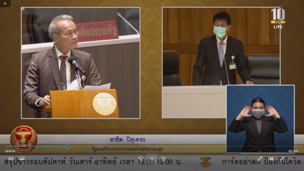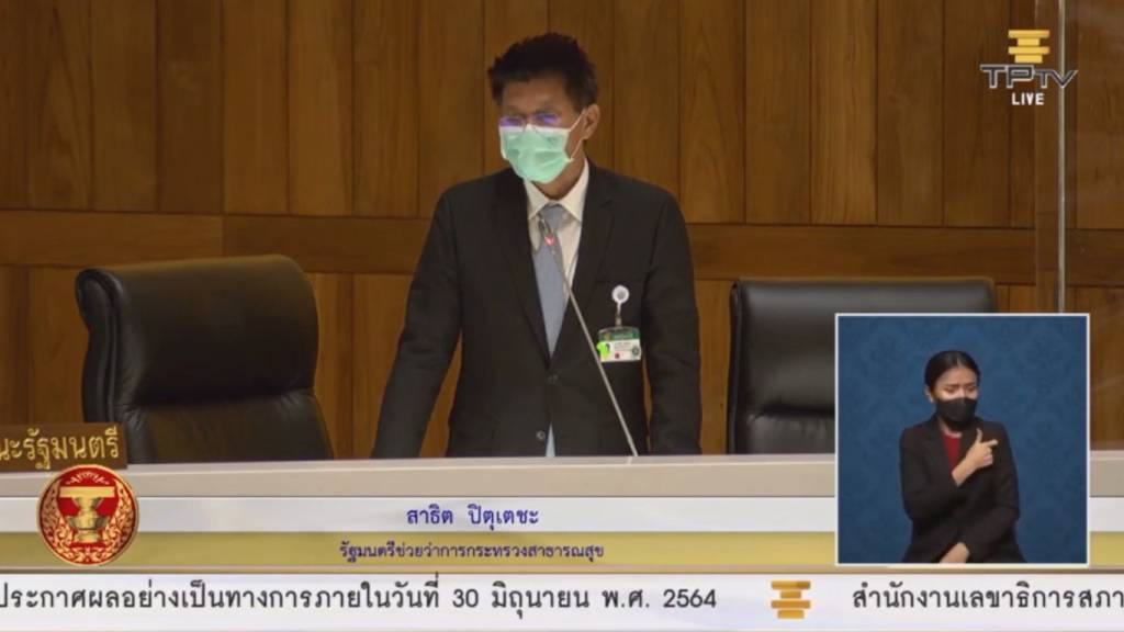 โดยนายสาธิต ปิตุเตชะ รัฐมนตรีช่วยว่าการกระทรวงสาธารณสุข ซึ่งได้รับมอบหมายจากรองนายกรัฐมนตรี และรัฐมนตรีว่าการกระทรวงสาธารสุข นายอนุทิน ชาญวีรกูล ได้ตอบกระทู้ถามสด ต่อนายมณฑล โพธิ์คาย ว่า รัฐบาลได้เตรียมวัคซีนต้นทุนประมาณ 61 จากแอสตร้าเซนเนก้า (Astrazenaca) และวัคซีนเสริมจากซิโนแวค (Sinovac) ประมาณ 7 ล้านโดส โดยประมาณ นอกจากนี้รัฐบาลได้มีการเจรจากับวัคซีนทางเลือกอีก 3-4 ยี่ห้อ ซึ่งก็จะมีการดำเนินการอยู่ในระหว่างการเจรจา และเข้าสู่การขั้นการเจรจา ซึ่งจะมาเติมในส่วนที่ท่านนายกรัฐมนตรี ได้แถลงไปแล้วอีก 2 ยี่ห้อ ก็คือ ไฟเซอร์ และ จอห์นสัน แอนด์ จอห์นสัน ตัวเลขประมาณ 25 ล้านโดส และ 5 ล้านโดส นอกจากนี้ พบว่าวัคซีนทางเลือกที่จะถูกนำเข้าจากภาคเอกชน โดยรัฐบาลให้หน่วยงานของรัฐไปเป็นหน่วยงานกลางในการประสานงานกับบริษัท vaccine คือ โมเดอร์นา ซึ่งจะมีจำนวนตามที่บริษัทเอกชนจะสั่งจากบริษัทผลิตวัคซีนจำนวนหนึ่ง และวัคซีนซิโนฟาร์ม ที่ราชวิทยาลัยจุฬาภรณ์ ก็จะนำเข้าอีก 1 ล้านโดส ในช่วงแรก ทั้งหมดก็จะเป็นไปตามเป้าหมายที่ท่านนายกฯ ได้ตั้งเป้าว่า จะต้องได้วัคซีนประมาณ 100 ล้านโดส เพื่อที่จะฉีดให้คนไทยได้ประมาณ 50 ล้านคน ในการที่จะสร้างภูมิต้านทานหมู่ให้กับประเทศไทย ส่วนการเจรจา และการได้มาของวัคซีนในแต่ละส่วน แต่ละยี่ห้อ เป็นไปตามปัจจัย และเงื่อนไขที่ตกลงกันไว้ ซึ่งในสถานการณ์ตอนนี้คนทั้งโลกกำลังต้องการวัคซีนจำนวนมาก เราโชคดีที่เรามีการเจรจากับวัคซีนต้นทุนของเรา คือบริษัท Astrazeneca 61 ล้านโดส และเราก็มีการเจรจาและเพิ่มเติมจำนวนวัคซีนเข้ามาเรื่อยๆ ก็คือ วัคซีนซิโนแวค จากประเทศจีน ซึ่งเป็นมิตรประเทศ เวลาเราเจรจา หรือท่านรองนายกรัฐมนตรีท่านนายกมนตรีไปพูดคุย เราต้องการให้เข้ามาเสริมในช่วงเวลาไหน เขาก็พยายามส่งมาให้เราโดยที่เป็นการพูดคุยกันแบบมิตรประเทศ ก็มาช่วยแก้ไขปัญหาในบางสถานการณ์ที่วัคซีนในต้นทุนหลักของเราขาดแคลนส่วนแผนการจัดกระจายวัคซีนไปยังประชาชน ก็เป็นไปตามแผนที่วางไว้ เดิมเราจัดกลุ่มความสำคัญให้กับ 2 กลุ่มแรก คือ กลุ่มผู้สูงอายุ ตั้งแต่ 60 ปีขึ้นไป และ กลุ่มที่เป็น 7 โรคเสี่ยง อันนี้ให้ลงทะเบียนกับหมอพร้อมก่อน ลงทะเบียนเสร็จเมื่อวันที่ 30 พฤษภาคม มีจำนวนคนลงทะเบียนประมาณ 8 ล้านคน หลังจากนั้น เกิดการระบาดในกรุงเทพฯ ซึ่งท่านนายกฯ การว่าถ้าเป็นพื้นที่ระบาด ก็จะต้องมีความสำคัญในพื้นที่นั้น เลยเพิ่มสัดส่วนจำนวนวัคซีนที่นำเข้ามาให้มาฉีดให้กับคนในกรุงเทพฯ คนในกรุงเทพฯ จะมีการแบ่งหลายกลุ่ม เช่น อาชีพเสี่ยง ก