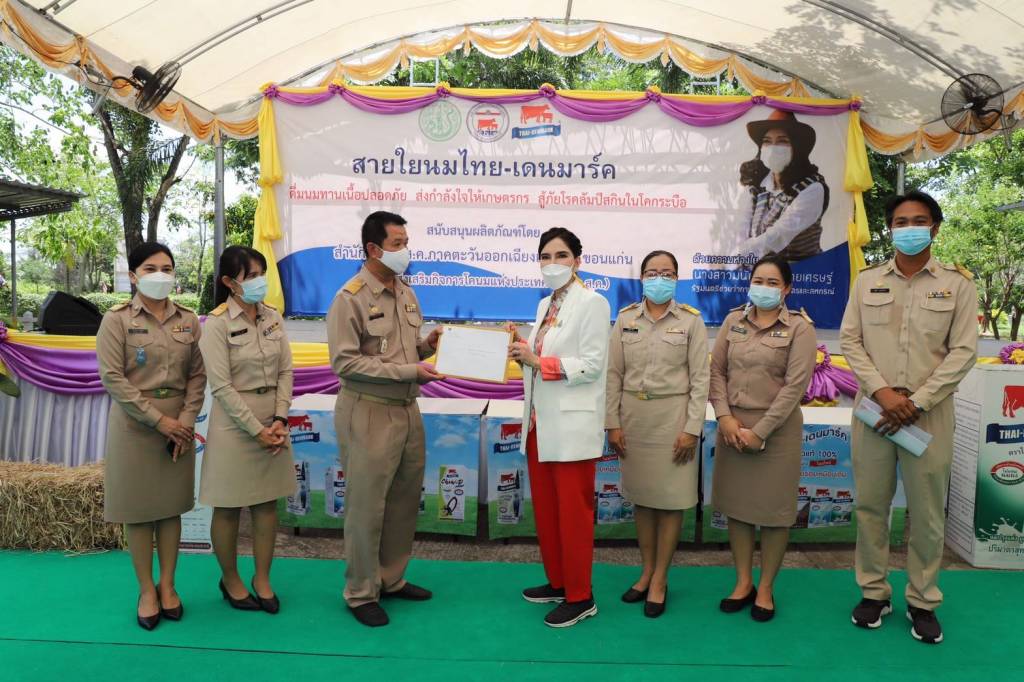 วันที่ 18 มิถุนายน 2564 นางสาวมนัญญา ไทยเศรษฐ์ รัฐมนตรีช่วยว่าการกระทรวงเกษตรและสหกรณ์ ลงพื้นที่เป็นประธานพิธีเปิดกิจกรรม "ดื่มนมทานเนื้อปลอดภัย ส่งกำลังใจให้เกษตรกร สู้ภัยโรคลัมปีสกินในโค-กระบือ" ณ สำนักงานองค์การส่งเสริมกิจการโคนมแห่งประเทศไทย ภาคตะวันออกเฉียงเหนือ ตำบลท่าพระ อำเภอเมือง จังหวัดขอนแก่น โดยมี นายฉกรรจ์ แสงรักษาวงศ์ ประธานคณะที่ปรึกษารัฐมนตรีช่วยว่าการกระทรวงเกษตรและสหกรณ์ นางวันเพ็ญ เศรษฐรักษา ที่ปรึกษารัฐมนตรีช่วยว่าการกระทรวงเกษตรและสหกรณ์ นายฐิตินันท์ แสงนาค สมาชิกสภาผู้แทนราษฎร เขต 1 จังหวัดขอนแก่น พรรคภูมิใจไทย พร้อมด้วยหัวหน้าส่วนราชการ และผู้บริหาร อ.ส.ค. ให้การต้อนรับ