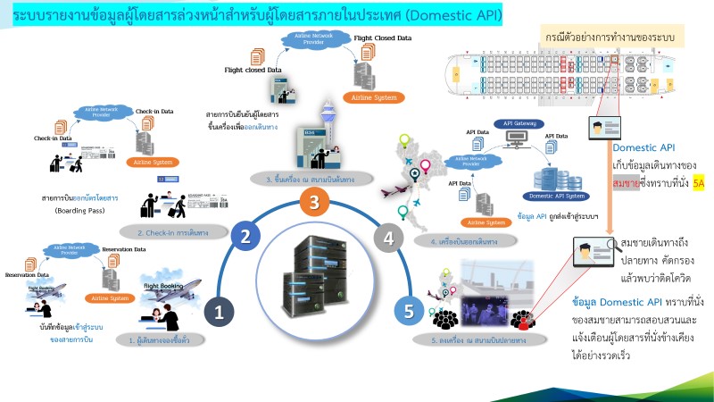 1. ระบบรายงานข้อมูลผู้โดยสารล่วงหน้าสำหรับผู้โดยสารภายในประเทศ (Domestic API) สายการบินจะสามารถส่งรายงานข้อมูลส่วนบุคคลแบบอิเล็กทรอนิกส์ของผู้โดยสารภายในประเทศให้กับสนามบินต้นทาง ปลายทาง และสนามบินที่มีเที่ยวบินแวะผ่าน (Transit/Transfer) เพื่อใช้สำหรับการเช็คอินขึ้นเครื่องบิน (Check-in) ได้ทำให้ขยายขีดความสามารถการเชื่อมโยง และติดตามข้อมูลของผู้โดยสารภายในประเทศ และระหว่างประเทศ รวมถึงเตรียมรองรับการใช้งานหนังสือเดินทางสุขภาพ (Health Passport) ในอนาคต