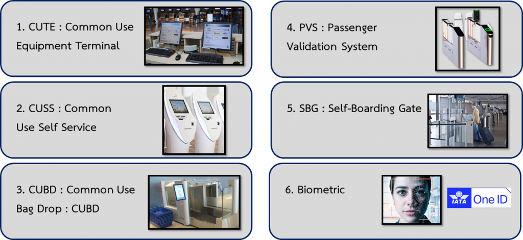 2. ระบบบริการผู้โดยสารขึ้นเครื่อง CUPPS (Common Use Passenger Processing System) หรือระบบเช็คอินด้วยตนเองอัตโนมัติ ผู้โดยสารจะสามารถเช็คอินด้วยตนเองโดยกรอก Booking Number จากนั้นระบบจะพิมพ์บัตรโดยสารและป้ายติดสัมภาระ (Baggage Tag) โดยอัตโนมัติ รวมถึงมีระบบพิสูจน์อัตลักษณ์ที่แม่นยำ ซึ่งจะช่วยเพิ่มประสิทธิภาพการจัดการผู้โดยสารในสนามบินภายในประเทศให้เป็นมาตรฐานทัดเทียมสนามบินนานาชาติ และช่วยลดจำนวนเจ้าหน้าที่ ลดขั้นตอนการตรวจสอบเอกสารลดการสัมผัส และลดความแออัดภายในสนามบิน เพื่อรองรับการเดินทางทางอากาศในรูปแบบใหม่ในอนาคต (ปัจจุบันสนามบินนานาชาติของประเทศไทย มีการใช้งานทั้ง 2 ระบบอยู่แล้ว)