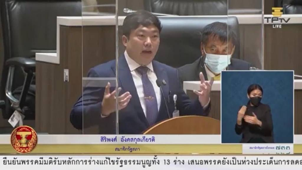 “ เรื่อง UBI นี้เป็นเรื่องใหม่สำหรับสภาแห่งนี้ ภายนอกอาจจะมีกลุ่มผู้คนจำนวนมากที่เขาพูดถึง มีกลุ่มการเมืองบางกลุ่มอย่างเช่นกลุ่มแคร์ ที่เขาพูดถึงเรื่องนี้อยู่ภายนอกสภาแล้ว แต่วันนี้รัฐสภาแห่งนี้ พรรคภูมิใจไทย จะขอเป็นพรรคแรกที่จะปักธงเรื่องนี้ และยืนยันว่า จะสนับสนุนนโยบายลักษณะนี้ในทุกๆ โอกาส วันนี้ขอวอนท่านสมาชิกรัฐสภาทุกท่าน กรุณาให้โอกาสสนับสนุนร่างฉบับที่ 7 นี้ แล้วเรามาถกเถียงกันว่าจะทำอย่างไร จะเดินหน้าอย่างไร อย่าเพิ่งเอาปัญหาที่ยังแก้ไม่ได้มาตัดโอกาส การแก้ไขมาตรา 55 /1 นอกจากจะเป็นการช่วยคนยากจน และเป็นการให้รายได้แก่ผู้ยากจนแล้ว ยังเป็นการทำให้คุณค่าของความเป็นคนของคนเท่ากัน จึงขอความกรุณาจากสมาชิกทุกท่านว่า วันนี้เรามาจุดไม้ขีดก้านแรกด้วยกัน ” นายสิริพงศ์ กล่าวทิ้งท้าย