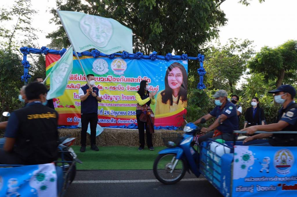 และกิจกรรมตอนท้าย ได้ลงพื้นที่เยี่ยมฟาร์มเกษตรกรเพื่อให้กำลังใจพี่น้องเกษตรกรผู้เลี้ยงโค และกระบือ และได้ชมการสาธิตฉีดพ่นยาฆ่าเชื้อ เพื่อป้องกันการระบาดของโรคลัมปี สกิน (Lumpy Skin Disease) ในโคและกระบือ ซึ่งทำการฉีดพ่นโดย โดยสำนักงานปศุสัตว์จังหวัด พร้อมปล่อยขบวนคาราวานป้องกัน และฉีดพ่นยาฆ่าเชื้อ เพื่อเป็นการอำนวยความสะดวกให้แก่พี่น้องเกษตรกร ณ โกยรัมย์ฟาร์ม อ.กระสัง จ.บุรีรัมย์