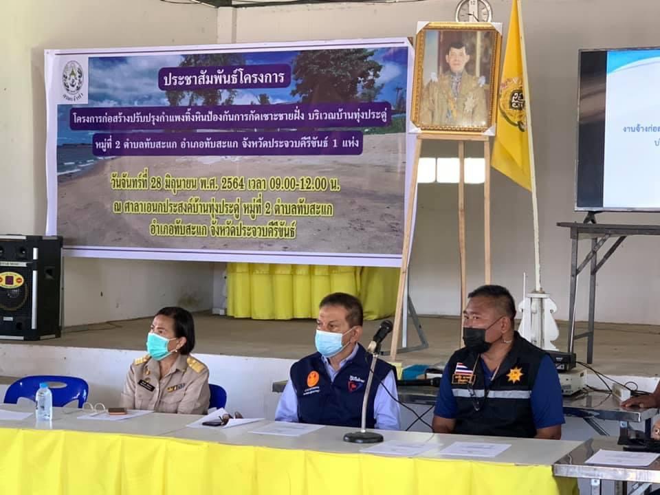 28 มิถุนายน 2564 เวลา 13:46"ส.ส.สวาป เผ่าประทาน" เป็นประธานประชุมสร้างความเข้าใจ โครงการก่อสร้างปรับปรุงกำแพงหินทิ้งป้องกันการกัดเซาะชายฝั่ง ชายทะเลบ้านทุ่งประดู่วันที่ 28 มิถุนายน 2564 นายสวาป เผ่าประทาน ส.ส.บัญชีรายชื่อ พรรคภูมิใจไทย เป็นประธานประชุมสร้างความเข้าใจ โครงการก่อสร้างปรับปรุงกำแพงหินทิ้งป้องกันการกัดเซาะชายฝั่ง ชายทะเลบ้านทุ่งประดู่ ณ ศาลาเอนกประสงค์บ้านทุ่งประดู ตำบลทับสะแก อำเภอทับสะแก จังหวัดประจวบคีรีขันธ์ พร้อมด้วย กำนัน ผู้ใหญ่บ้าน ม.2 ปลัด อบต.ตำบลทับสะแก และตัวแทนจากกรมเจ้าท่า ผู้รับเหมา พร้อมชาวบ้าน ได้เข้าร่วมประชุมสร้างความเข้าใจ แลกเปลี่ยนเสนอความคิดเห็น ชี้แนะ เพื่อให้โครงการก่อสร้างปรับปรุงกำแพงทิ้งหินป้องกันการกัดเซาะชายฝั่งฯ เป็นไปด้วยดีและสำเร็จตามแผนงานที่วางไว้ต่อไป แชร์บทความนี้: