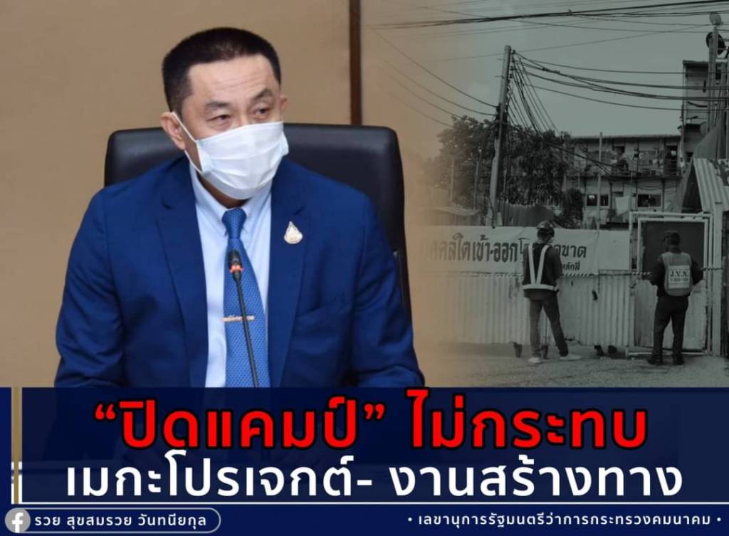 “ศักดิ์สยาม”ย้ำชัด ”ปิดแคมป์”คนงานก่อสร้าง ไม่กระทบเมกะโปรเจกต์- งานสร้างทาง พร้อมออกแนวทางปฎิบัติหน่วยงานคมนาคม รองรับมาตรการคุมโควิด