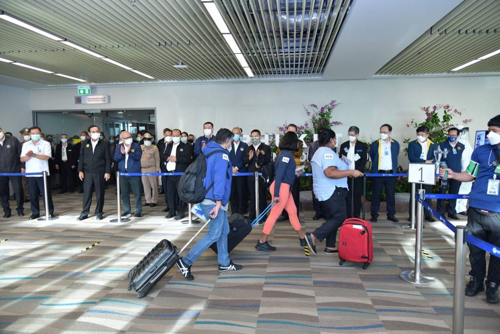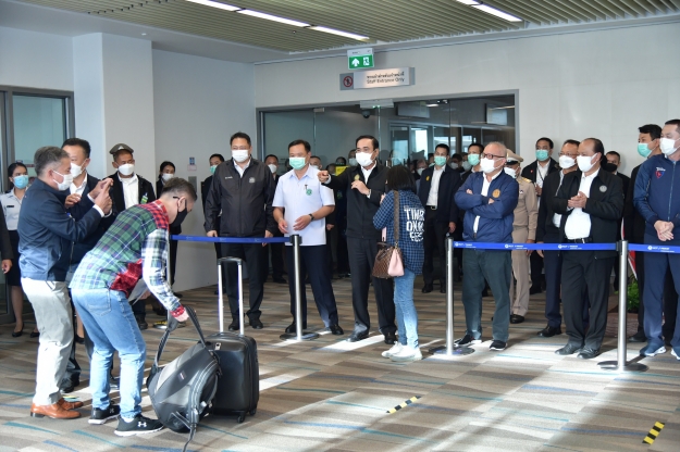 2 กรกฎาคม 2564 เวลา 00:30รมว.ท่องเที่ยวและกีฬา ร่วม ครม. ต้อนรับนักท่องเที่ยวต่างประเทศ เที่ยวบิน SQ736 จากสิงคโปร์-ภูเก็ต ในโครงการ “Phuket Sandbox”เมื่อวันนี้ (1 ก.ค.64) เวลา 17.30 น. ณ บริเวณทางออกผู้โดยสาร ท่าอากาศยานนานาชาติภูเก็ต นายพิพัฒน์ รัชกิจประการ รัฐมนตรีว่าการกระทรวงการท่องเที่ยวและกีฬา (รมว.กก.) พร้อมด้วย นายนภินทร ศรีสรรพางค์ ผู้ช่วยรัฐมนตรีประจำกระทรวงการท่องเที่ยวและกีฬา นายเขมพล อุ้ยตยะกุล เลขานุการรัฐมนตรีว่าการกระทรวงการท่องเที่ยวและกีฬา นายโชติ ตราชู ปลัดกระทรวงการท่องเที่ยวและกีฬา ร่วมกับคณะรัฐมนตรี นำโดย พลเอก ประยุทธ์ จันทร์โอชา นายกรัฐมนตรี และรัฐมนตรีว่าการกระทรวงกลาโหม รอให้การต้อนรับ นักท่องเที่ยวต่างประเทศทั้งเอเชียและยุโรป ที่เดินทางมาโดยเที่ยวบิน SQ736 เส้นทางบินจากสิงคโปร์มายังจังหวัดภูเก็ต ในโครงการ “Phuket Sandbox” โดยผู้โดยสารจำนวน 51 คน แชร์บทความนี้: