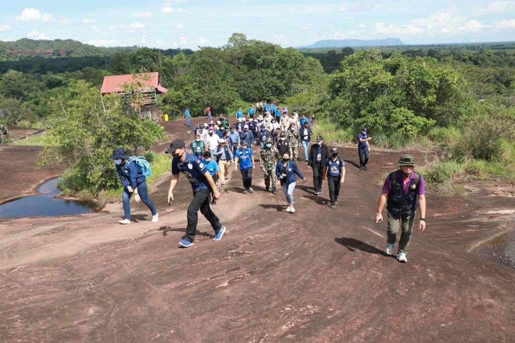นายทรงศักดิ์ ทองศรี กล่าวว่า ในตอนนี้จังหวัดบึงกาฬก่อตั้งมา 10 ปี แล้ว และกำลังจะมีสะพานข้ามแม่น้ำโขงแห่งที่ 5 และกำลังจะมีสนามบินบึงกาฬ และกำลังจะพัฒนาเป็นศูนย์กลางทางเศรษฐกิจอีกแห่งหนึ่งของภาคอีสาน ในอีกด้านหนึ่งของการพัฒนาคือ พัฒนาแหล่งท่องเที่ยว ซึ่งน้ำตกถ้ำพระถือว่าเป็นแหล่งท่องเที่ยวที่ได้รับความนิยมเป็นอย่างมาก แต่ปัญหาที่เกิดทุกปีคือ พอหมดฤดูฝน น้ำก็จะแห้งอย่างรวดเร็ว ทำอย่างไรจึงจะให้มีน้ำตลอดทั้งปี จึงได้มีการสำรวจพื้นที่ เพื่อหาทางที่จะพัฒนาให้มีแหล่งกักเก็บน้ำไว้ใช้ในฤดูแล้งที่จะทำให้เกิดประโยชน์ทั้งการท่องเที่ยวและเป็นการอนุรักษ์ทรัพยากรป่าไม้ สัตว์ป่า ให้อุดมสมบูรณ์ และประโยชน์ต่อการเกษตร โดยไม่ก่อผลกระทบต่อสิ่งแวดล้อม คุ้มค่ากับงบประมาณ และคุ้มค่ากับศักยภาพของพื้นที่ต่อไป