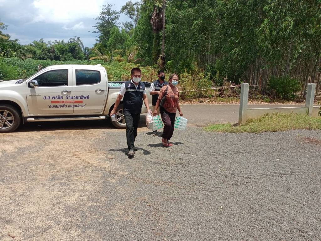 นอกจากนี้ ยังได้ลงพื้นที่ร่วมกับ ผช.สาธารณสุขอำเภอครบุรี, ผอ.รพ.สต. และผู้นำชุมชนเยี่ยมให้กำลังใจพร้อมมอบสิ่งของ และอาหารให้กับผู้ที่กักตัวกลุ่มผู้เสี่ยงสัมผัสสูง