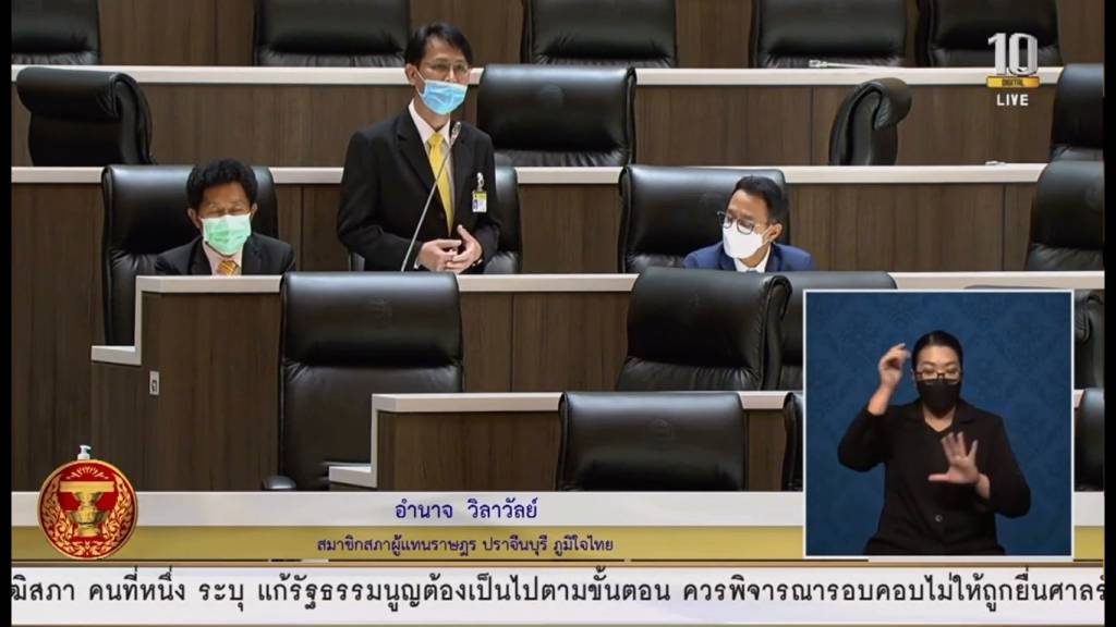 เมื่อวันที่ 8 กรกฎาคม 2564 นายอำนาจ วิลาวัลย์ สมาชิกสภาผู้แทนราษฎรจังหวัดปราจีนบุรี เสนอในญัตติด่วนเรื่องมาตรการและการแก้ไขปัญหาโรคติดเชื้อไวรัสโคโรนา 2019