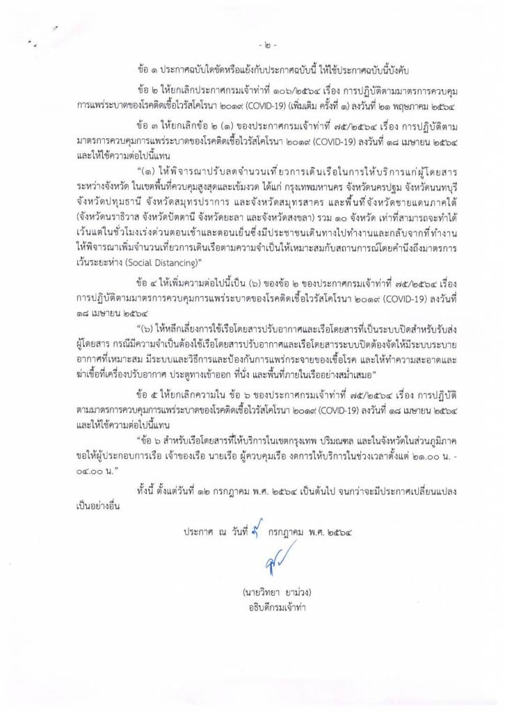 ทั้งนี้ สำหรับประกาศนี้ จะมีผลตั้งแต่วันที่ 12กรกฎาคม พ.ศ. 2564 เป็นต้นไป จนกว่าสถานการณ์ดังกล่าวจะสิ้นสุดไป หรือมีประกาศอื่นใดเพิ่มเติม ประกาศ ณ วันที่ 9 กรกฎาคม พ.ศ. 2564