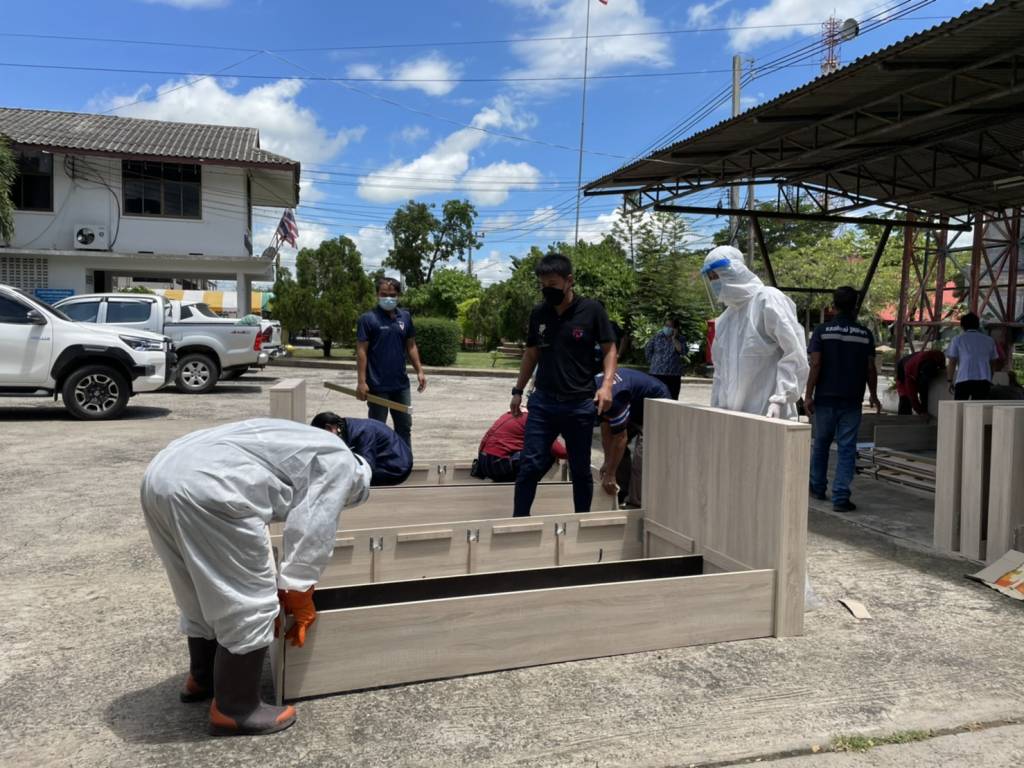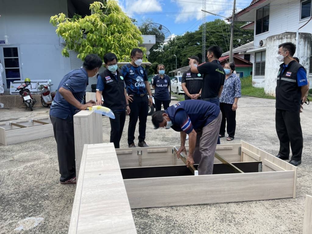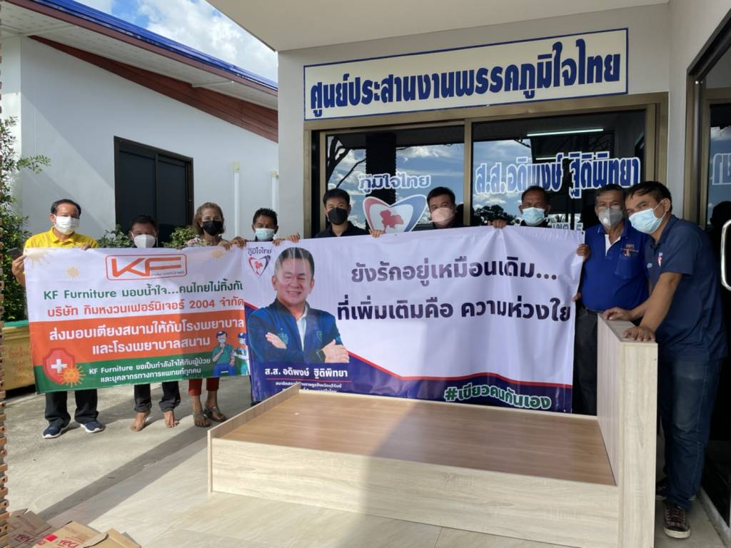 หลังจากนั้น ทางทีมงานได้ลงพื้นที่เป็นตัวแทนรับมอบ เตียงสนาม จากบริษัท กิมหงวนเฟอร์นิเจอร์ 2004 จำกัด จำนวน 30 เตียง เพื่อนำไปมอบให้โรงพยาบาล และ โรงพยาบาลสนาม
