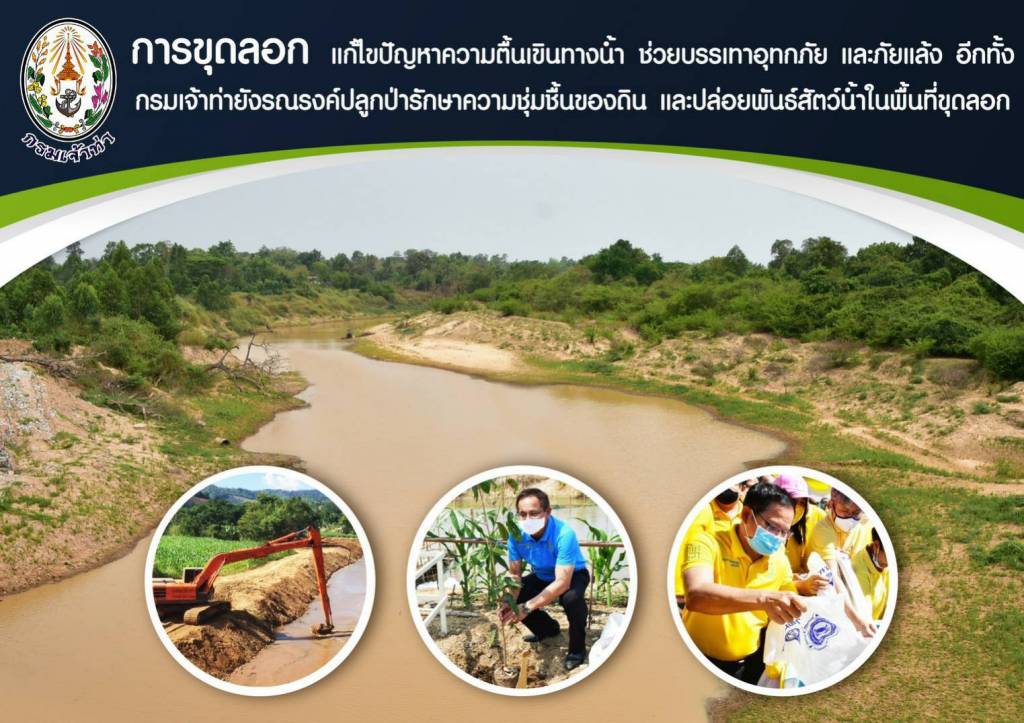 และหน่วยปฏิบัติงานพื้นที่แห่งใหม่ บริเวณลำน้ำแอก ตำบลหนองค่าย ตำบลตลาดไทร อำเภอประทาย จังหวัดนครราชสีมา เมื่อวันที่ 9 กรกฎาคม 2564 โดยใช้เครื่องจักรเป็นรถขุด ขก.2 และ รถขุดตักดินเช่าเอกชน มีนายศิริศักดิ์ ศุภผล นายช่างขุดลอกชำนาญงาน ปฏิบัติหน้าที่หัวหน้าหน่วยฯ ถึงวันที่ 29 กันยายน 2564 ขุดลอกตั้งแต่กิโลเมตรที่ 5+300 ถึง กิโลเมตรที่ 1+400 ระยะทาง 3,900 เมตร ขุดลอกร่องน้ำให้ได้ความกว้าง 20-30 เมตร ขุดลอกระดับก้นร่องลึกประมาณ 139 เมตร (จากระดับน้ำทะเลปานกลาง) ปริมาณวัสดุขุดลอก 83,100 ลูกบาศก์เมตร ระยะเวลาดำเนินการ 82 วัน โดยขุดลอกเพื่อเพิ่มความกว้างและความลึกของร่องน้ำ เพิ่มพื้นที่ในการกักเก็บน้ำ แก้ไขปัญหากระแสน้ำกัดเซาะตลิ่ง รวมทั้งแก้ไขปัญหาอุทกภัยและภัยแล้ง ปัจจุบันขุดลอกได้ระยะทาง 199 เมตร ปริมาณวัสดุขุดลอก 3,746 ลูกบาศก์เมตร คิดเป็นร้อยละ 4.50