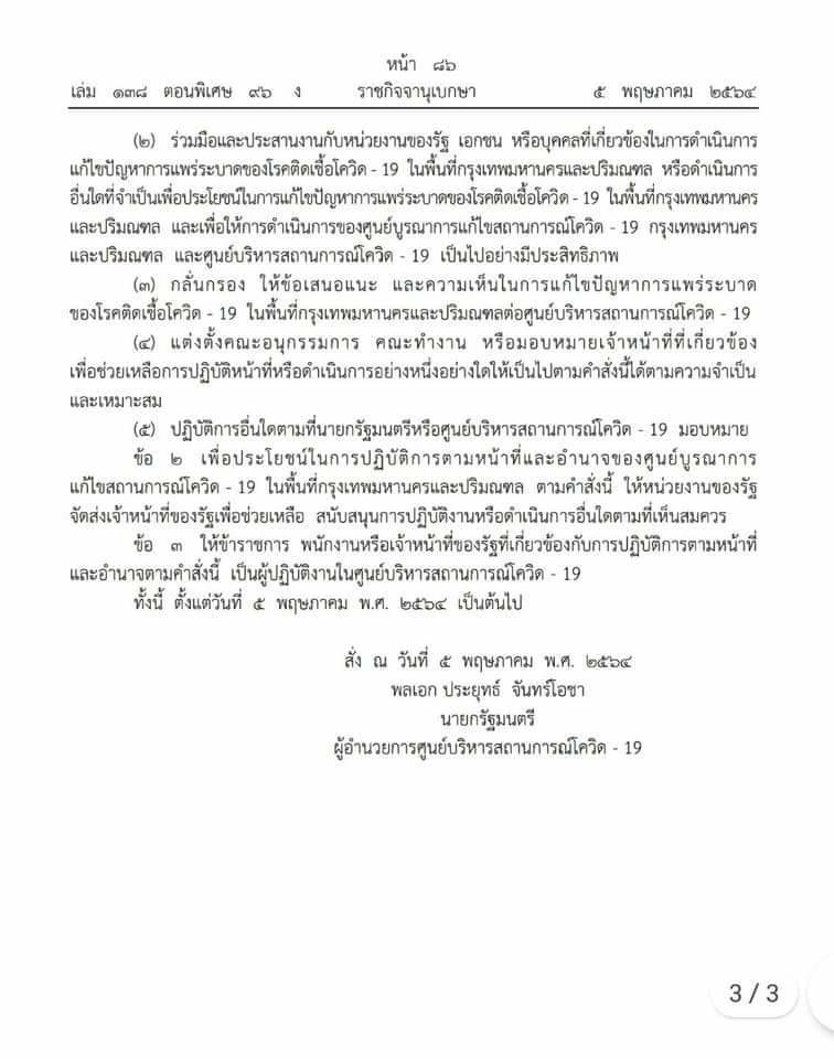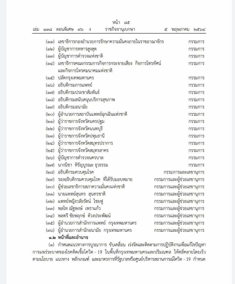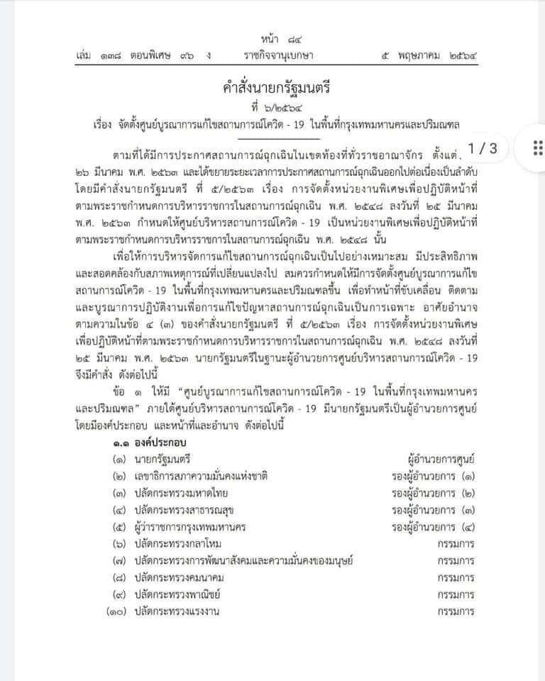 คือเรื่องการบริหารจัดการโควิดในกรุงเทพฯ ที่เละเทะอยู่ในวันนี้ เพราะเรื่องการบริหารจัดการในพื้นที่กรุงเทพฯ นั้น นายกฯประยุทธ์ ท่านได้ออกคำสั่งแต่งตั้ง ตามคำสั่งที่ 6/2564 เรื่องจัดตั้งศูนย์บูรณาการแก้ไขสถานการณ์โควิด-19 ในพื้นที่กรุงเทพมหานคร และปริมณฑล ซึ่งคำสั่งนี้มีท่านนายกฯเป็นผู้อำนวยการศูนย์เอง มีเลขาสภาความมั่นคงฯ ผู้ว่า กทม.อัศวิน ปลัดกระทรวงหลายกระทรวง เป็นรองผู้อำนวยการ มีอธิบดีจากสาธารณสุขมาเป็นกรรมการ และแน่นอนไม่มีรัฐมนตรีว่าการสาธารณสุขอยู่ในคณะนี้
