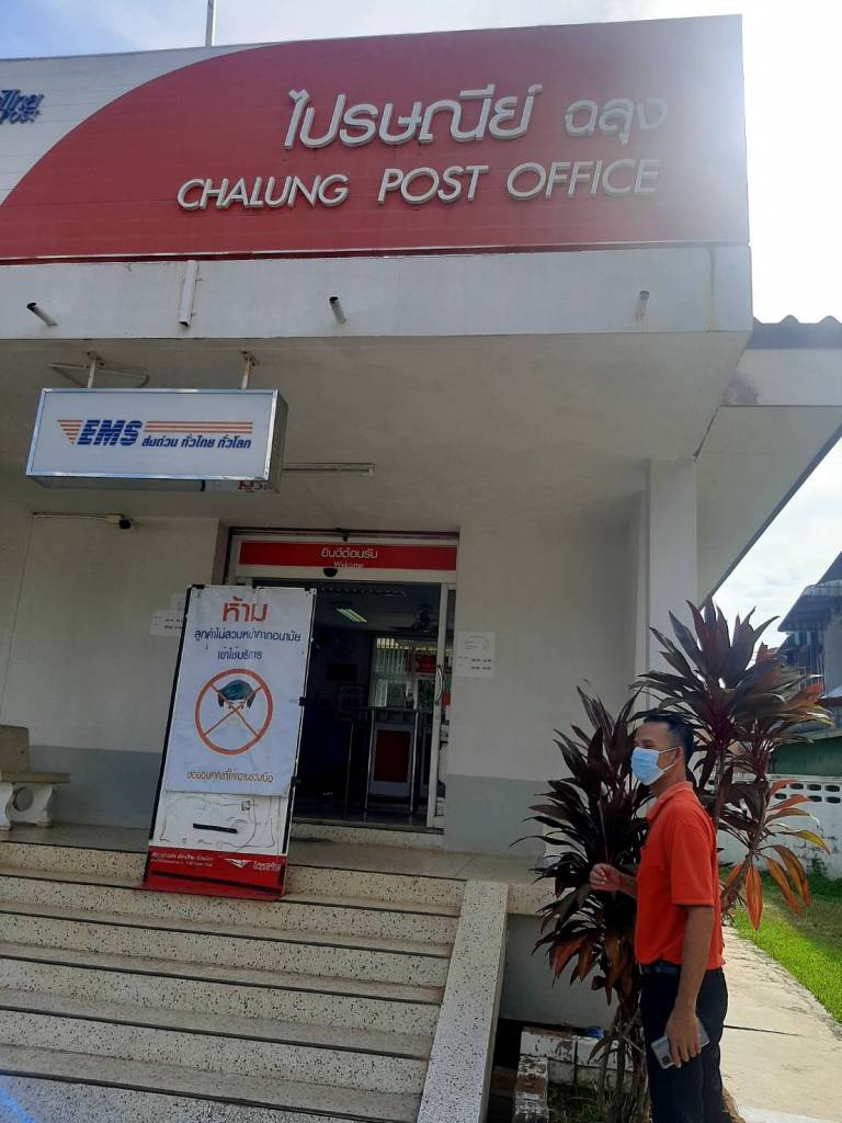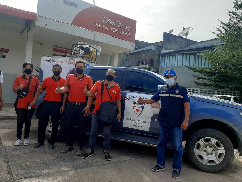 ขณะที่ ทีมพ่นยาฆ่าเชื้อโควิด-19 นายสามารถ ด่อสา ทีมผช.ส.ส.ลงพื้นที่แทนนายพิบูลย์ รัชกิจประการ พ่นยาฆ่าเชื้อให้ ที่ทำการไปรษณีย์ฉลุง