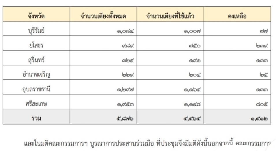 - ศรีสะเกษ : จำนวนเตียงทั้งหมด 1,953 จำนวนเตียงที่ใช้แล้ว 1,148 คงเหลือ 805