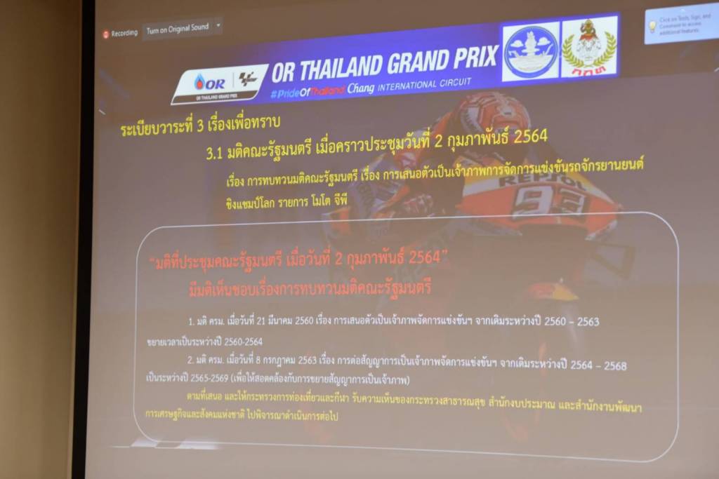 21 กรกฎาคม 2564 เวลา 12:25รมว.พิพัฒน์ ร่วมประชุมคณะกรรมการอำนวยการจัดการแข่งขันจักรยานยนต์ ชิงแชมป์โลก รายการ โมโต จีพี ประจำปี 2564-2569 (6ปี) ครั้งที่ 1/2564วันที่ 21 กรกฎาคม 2564 นายพิพัฒน์ รัชกิจประการ รัฐมนตรีว่าการกระทรวงการท่องเที่ยวและกีฬา เป็นประธานการประชุมคณะกรรมการอำนวยการจัดการแข่งขันจักรยานยนต์ ชิงแชมป์โลก รายการ โมโต จีพี ประจำปี 2564-2569 (6ปี) ครั้งที่ 1/2564 โดยมี นายเขมพล อุ้ยตยะกุล เลขานุการรัฐมนตรีว่าการกระทรวงการท่องเที่ยวและกีฬา และนายโชติ ตราชู ปลัดกระทรวงการท่องเที่ยวและกีฬา เข้าร่วมประชุม ผ่านระบบวีดีโอคอนเฟอเรนซ์ (Application Zoom Cloud Meeting) ณ ห้องประชุม 1 ชั้น 2 กระทรวงการท่องเที่ยวและกีฬา มีเรื่องเพื่อพิจารณา คือ แนวทางการดำเนินงานในการจัดการแข่งขันจักรยานยนต์ชิงแชมป์โลก รายการ โมโต จีพี ประจำปี 2564 แชร์บทความนี้: