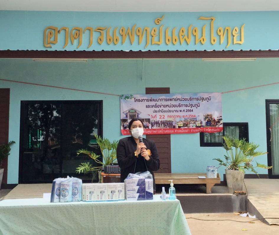 ส.ส.ฐิตินันท์ แสงนาค มอบหมายทีมงานนำหน้ากากอนามัย และเครื่องวัดอุณหภูมิไปมอบให้กับ อสม. ต.เมืองเก่า จ.ขอนแก่น