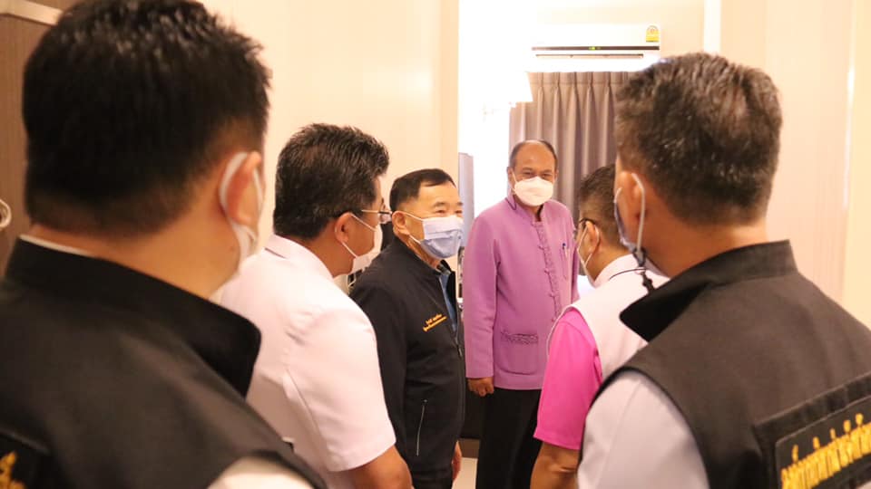 รมช.วีรศักดิ์ ได้ลงพื้นที่ตรวจสอบโรงแรมที่จะจัดตั้งเป็น โรงพยาบาลสนาม เพื่อตั้งรับสถานการณ์ผู้ป่วยโควิด-19 ล้นเตียง ณ โรงแรมฟอร์จูน ดิพลัส เขาใหญ่