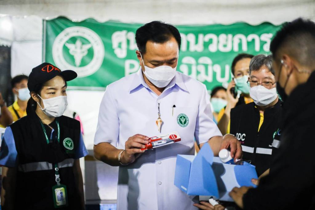 จากการลงพื้นที่พบผู้ป่วยติดเชื้อรอการประสานส่งต่อทั้งคนไทย และกลุ่มแรงงานต่างด้าว จึงได้แวะพูดคุยและสอบถาม รวมทั้งเร่งประสานให้รถพยาบาลมารับ ซึ่งเมื่อคืนนี้ ได้นำผู้ติดเชื้อโควิด เข้าสู่ระบบการรักษา จำนวน 6 ราย และให้ทีมแพทย์ทำการตรวจคัดกรองด้วยชุดตรวจในประชาชนที่กำลังรอผลตรวจด้วย Rapid Antigen test kit เพื่อให้ทราบผลทันที มีบางรายพบผลบวก จึงรีบประสานให้ทำ Home Isolation เนื่องจากยังไม่มีอาการรุนแรงเบื้องต้นสำหรับการกักตัวโดยสแกนคิวอาร์โค้ด เข้าสู่ระบบการรักษา และมอบกล่องดูแลผู้ป่วย ภายในกล่องประกอบด้วย ยา เวชภัณฑ์ 6 รายการ ได้แก่ ยาพาราเซตามอล ยาฟ้าทะลายโจร เครื่องวัดออกซิเจนปลายนิ้ว ปรอทวัดไข้ หน้ากากอนามัย และเจลแอลกอฮอล์