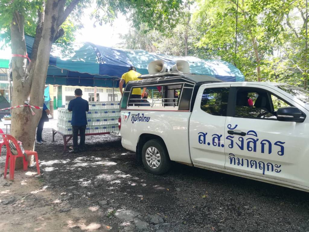 ต่อจากนั้น ส.ส.รังสิกร ทิมาตฤกะ สจ.สายเพชร ผาเจริญ อภิชาติ เจริญรัมย์ ที่ปรึกษานายกอบจ.และทีมงานสท.สตึก มอบน้ำและเครื่องดื่ม ให้พี่น้องบ้านนิคมสมบูรณ์ ที่ร่วมกันพัฒนาหมู่บ้านเนื่องในวันพ่อแห่งชาติ