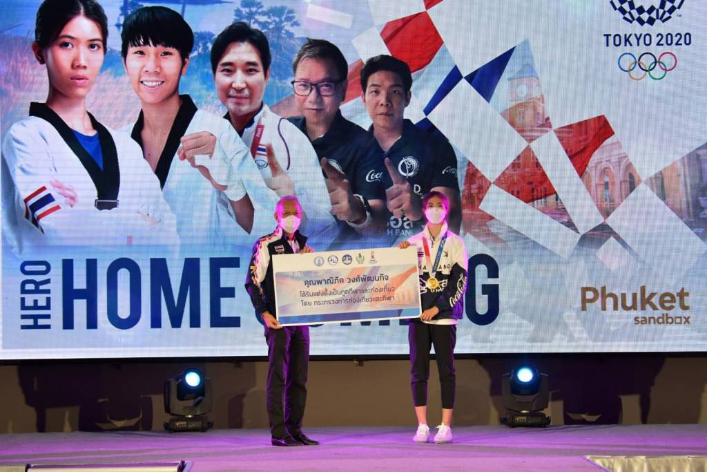 เมื่อวันที่ 28 กรกฏาคม ที่ผ่านมา ณ ห้อง แกรนด์ 1-2 โรงแรม โนโวเทล ซิตี้ โภคีธรา จังหวัดภูเก็ต มีพิธีต้อนรับฮีโร่โอลิมปิกเกมส์อย่างเป็นทางการ ภายใต้ชื่องาน "ฮีโร่ โฮม คัมมิ่ง"(Hero Home Coming) โดยมีนายพิพัฒน์ รัชกิจประการ รัฐมนตรีว่าการกระทรวงการท่องเที่ยวและกีฬา เป็นประธานในงาน พร้อมด้วย นายธรรมวรรธ วงศ์เจริญยศ นายกสมาคมนายกกีฬาจังหวัด (สมาพันธ์), ดร.ก้องศักด ยอดมณี ผู้ว่าการการกีฬาแห่งประเทศไทย นายทนุเกียรติ จันทร์ชุม รองผู้ว่าการฝ่ายกีฬาอาชีพและกีฬามวย นางโปรดปราน สมานมิตร รองผู้ว่าการฝ่ายยุทธศาสตร์และเทคโนโลยีสารสนเทศ การกีฬาแห่งประเทศไทย ร่วมในงาน โดยมีการถ่ายทอดสดผ่านระบบออนไลน์ เฟสบุ๊ค กองประชาสัมพันธ์ การกีฬาแห่งประเทศไทย โดย นายพิพัฒน์ รัชกิจประการ รมว.ท่องเที่ยวและกีฬา พร้อมทั้งคณะ ได้ร่วมกันมอบภาพประวัติศาสตร์และของที่ระลึกให้แก่ ผศ.พิมล ศรีวิกรม์ นายกสมาคมกีฬาเทควันโดแห่งประเทศไทย พร้อมด้วย นายธนฑิตย์ รักตะบุตร ผู้จัดการทีมเทควันโดทีมชาติไทย ตามด้วย "น้องเทนนิส"พาณิภัค วงศ์พัฒนกิจ ฮีโร่เหรียญทองประวัติศาสตร์เทควันโดโอลิมปิกเกมส์ และ "จูเนียร์" รามณรงค์ เสวกวิหารี นักเทควันโดรุ่น 58 กก. ชาย พร้อมทั้งมอบให้ โค้ชเช ยอง ซอก หัวหน้าผู้ฝึกสอนเทควันโดทีมชาติไทย และโค้ชวิชิต สิทธิกัณฑ์ ก่อนที่ผู้สนับสนุนจะมอบของที่ระลึกให้กับนักกีฬา,โค้ช และผู้บริหารสมาคม