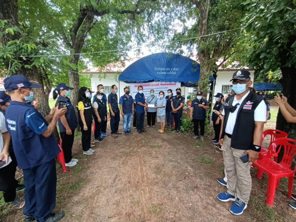 ต่อจากนั้น ได้ลงพื้นที่เยี่ยมให้กำลังใจเจ้าหน้าที่และผู้กักตัว ณ ศูนย์กักกันโรค อ.นาโพธิ์