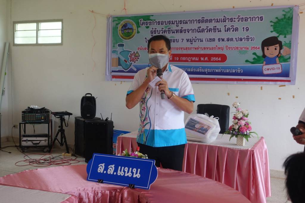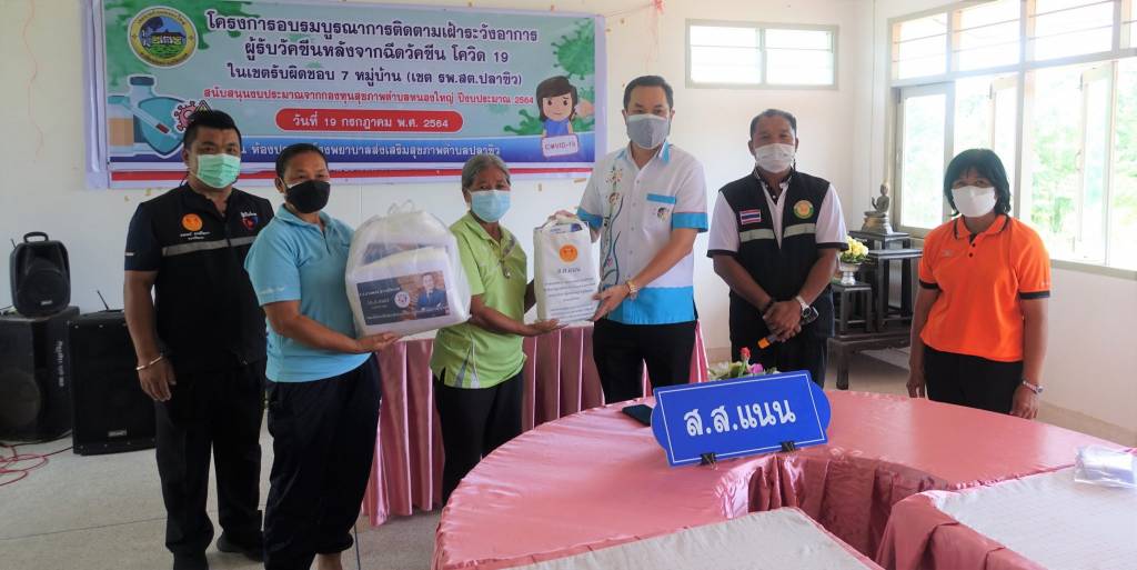 ต่อจากนั้น ได้ร่วม “ส่งกำลังใจ และสร้างขวัญกำลังใจให้ อสม.” โดยการทำประกันภัยโควิด-19 จาก ส.ส.อาสพลธ์ สรรณ์ไตรภพ (ส.ส.แนน) และ ประชาสัมพันธ์ รณรงค์ให้พี่น้องประชาชนลงทะเบียนฉีดวัคซีนโควิด-19 ณ โรงพยาบาลส่งเสริมสุขภาพตำบลปลาซิว ต.หนองใหญ่ อ.เมืองจันทร์ และ โรงพยาบาลส่งเสริมสุขภาพตำบลเมืองจันทร์ ต.เมืองจันทร์ อ.เมืองจันทร์ ตามลำดับ