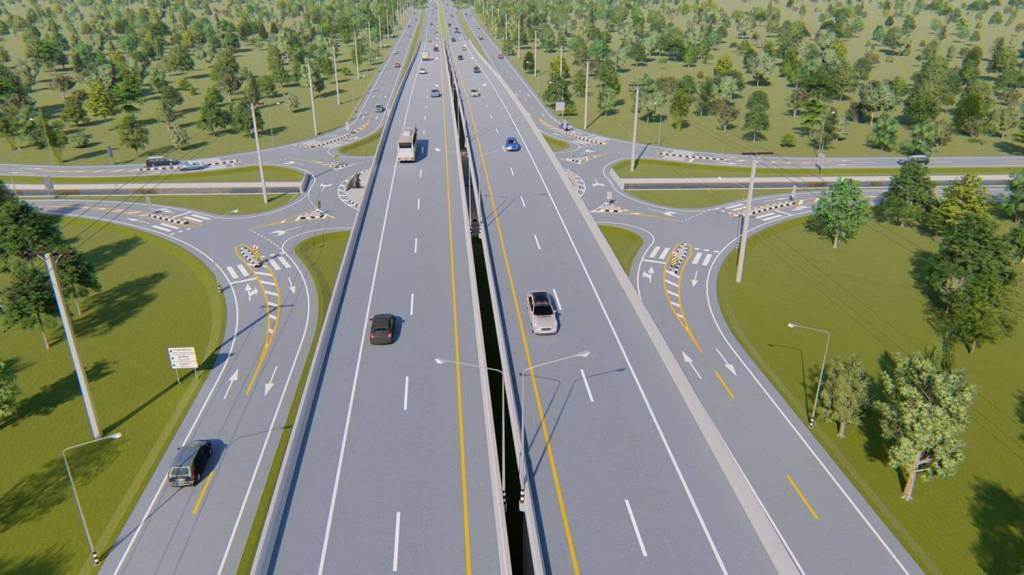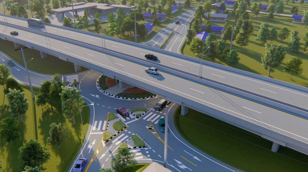 โดยรูปแบบการก่อสร้างเป็นถนนคอนกรีตขนาด 4 ช่องจราจร ความกว้างช่องจราจรละ 3.50 เมตร ไหล่ทางกว้างข้างละ 2.50 เมตร แบ่งทิศทางการจราจรด้วยแบริเออร์คอนกรีตกว้าง 1.60 เมตร ซึ่งรูปแบบทางแยกมี 4 จุดตัด ดังนี้
