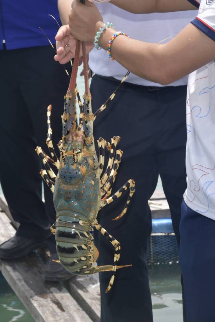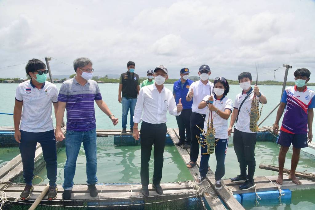 และ ในเวลา 11.30 น. นำคณะเดินทางไปเยี่ยมชม ฟาร์มกุ้งมังกร ณ ชุมชนท่าฉัตรไชย ซึ่งเป็นอาชีพตามแนวคิด BCG ในการนำสินค้าตามอัตลักษณ์ท้องถิ่นต่อยอดตามแนวคิดเศรษฐกิจสร้างสรรค์โดยใช้การท่องเที่ยวต่อยอดและยกระดับสินค้าชุมชน