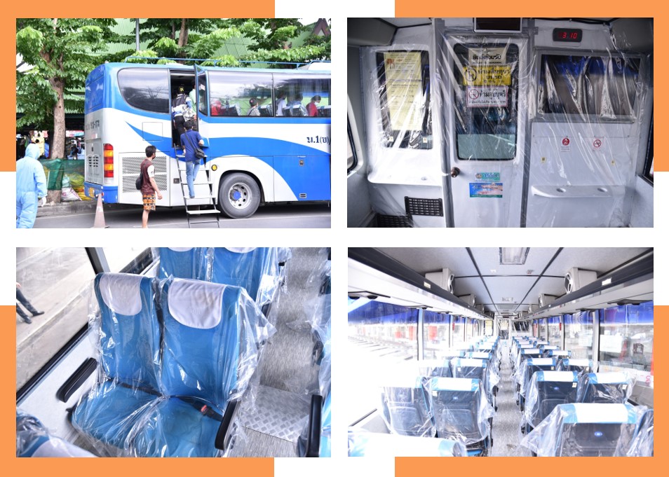 นอกจากนี้ ยังได้มีการนำรถบัสโดยสารของ บขส. ในการรับส่งผู้ป่วยจากกรมการขนส่งทหารบก (บางเขน) ไปยังจังหวัดอำนาจเจริญ เมื่อวันที่ 2 และ 4 ส.ค. 2564 โดยได้ปรับปรุงรถโดยสาร และกั้นห้องโดยสารระหว่างพนักงานขับรถ เจ้าหน้าที่สาธารณสุข และห้องโดยสาร การปรับระบบปรับอากาศบนรถ นำพลาสติกมาหุ้มบริเวณเบาะ เพื่อป้องกันการแพร่เชื้อระหว่างการเดินทาง รวมทั้งกรมการขนส่งทางบกดำเนินการรับผู้ป่วยจากจังหวัดนนทบุรี ไปส่งที่ศูนย์ขนส่งทหารบก บางเขน เมื่อวันที่ 2 ส.ค. 2564 และได้มีการสนธิกำลังกับหน่วยงานในระดับจังหวัดเพื่ออำนวยความสะดวกการเดินทางของผู้ป่วยให้สามารถกลับไปยังภูมิลำเนาได้อย่างสะดวก และปลอดภัย