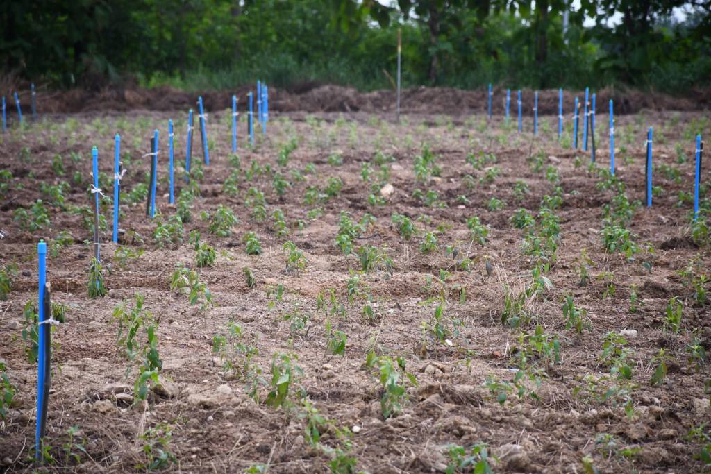 สำหรับฟ้าทะลายโจรเป็นไม้ล้มลุก สายพันธุ์ฟ้าทะลายโจรที่นำมาปลูกนั้นมีสารสำคัญแอนโดรกราโฟรไลด์สูง โดยปลูกแบบใช้กล้าช่วยประหยัดเมล็ดพันธุ์ อัตราการใช้เมล็ด 15 กรัมต่อไร่ ได้ต้นฟ้าทะลายโจรออกดอกใกล้เคียงกันทั่วแปลง ให้สารสำคัญสม่ำเสมอ สะดวกในการดูแลรักษาและเก็บเกี่ยว เมื่อต้นมีใบจริง 6 ใบ ให้ย้ายปลูกลงแปลงขุดหลุมปลูกลึก 15 เซนติเมตร ปลูกห่างระหว่างต้น 30 เซนติเมตร ระหว่างแถว 60 เซนติเมตร ในระยะออกดอก 25-50% ของทั้งแปลงให้เก็บเกี่ยวผลผลิตช่วงเช้า ใช้กรรไกรตัดส่วนเหนือดินห่างโคนต้น 4 ข้อหรือ 10 เซนติเมตร นำผลผลิตไว้ที่ร่ม เข้ากระบวนการตากแห้งเพื่อนำไปสกัดเป็นยาฟ้าทะลายโจร ส่งให้โรงพยาบาลเจ้าพระยาอภัยภูเบศร จ.ปราจีนบุรี นำไปผลิต ส่วนต้นตอดูแลรักษาเพื่อเก็บเมล็ดพันธุ์ไว้ปลูกฤดูต่อไป