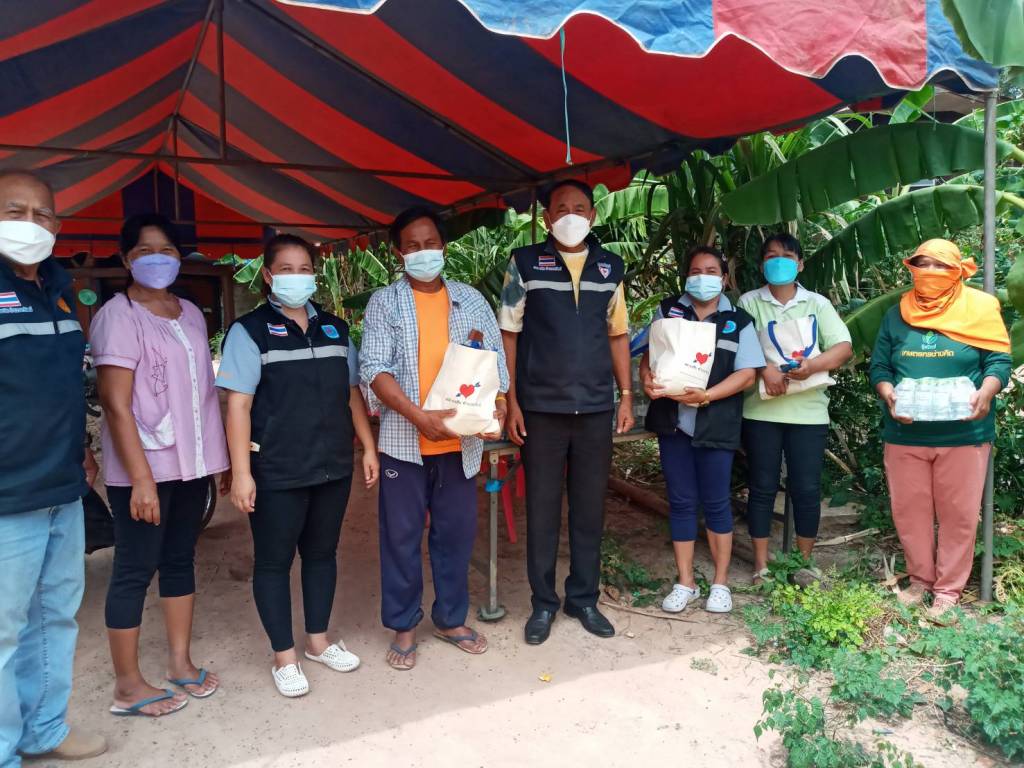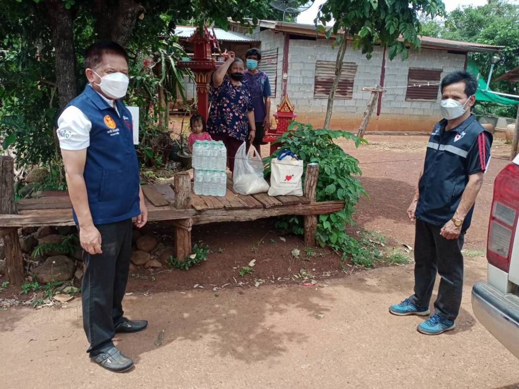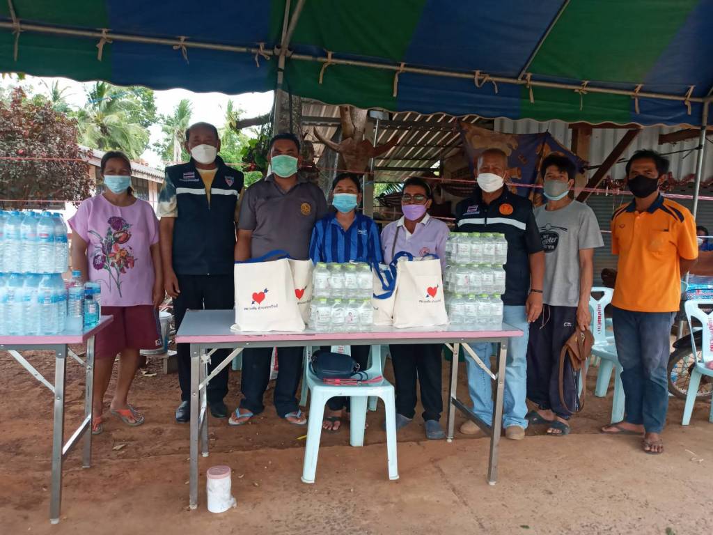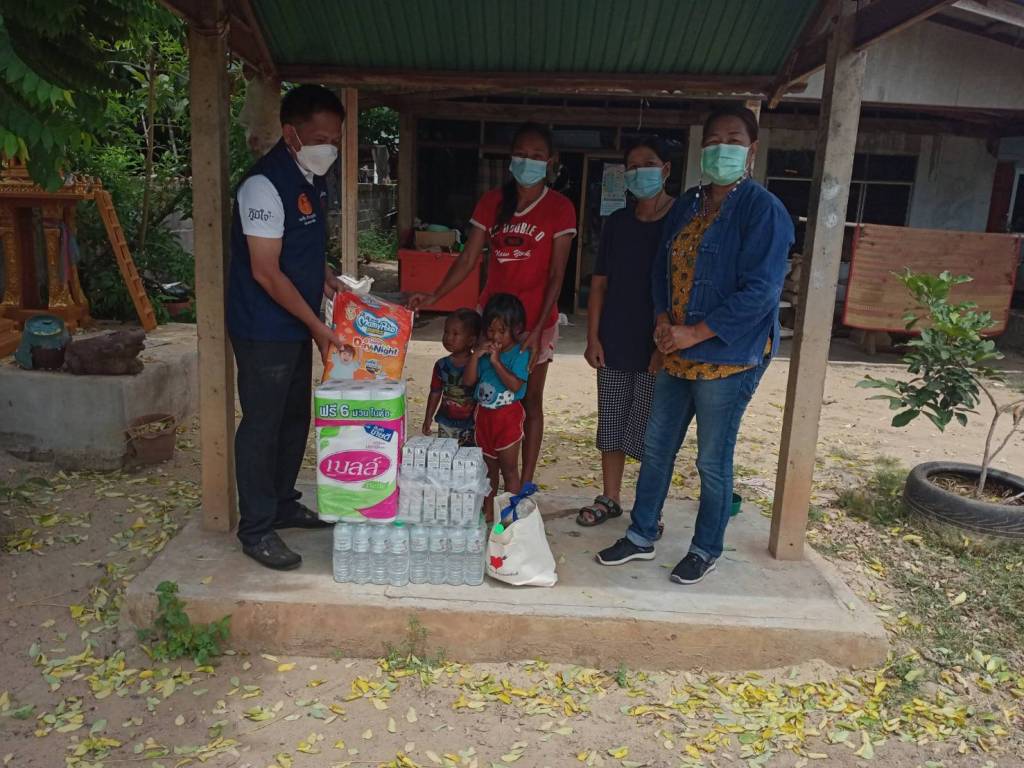 ขณะที่ "กลุ่มเพื่อนพรชัย" ได้เป็นสะพานบุญจากวัดสู่หมู่บ้านและผู้ร่วมบุญ นำสิ่งของมอบให้ผู้ถูกกักกันตัวกลุ่มเสี่ยงโรคโควิด-19