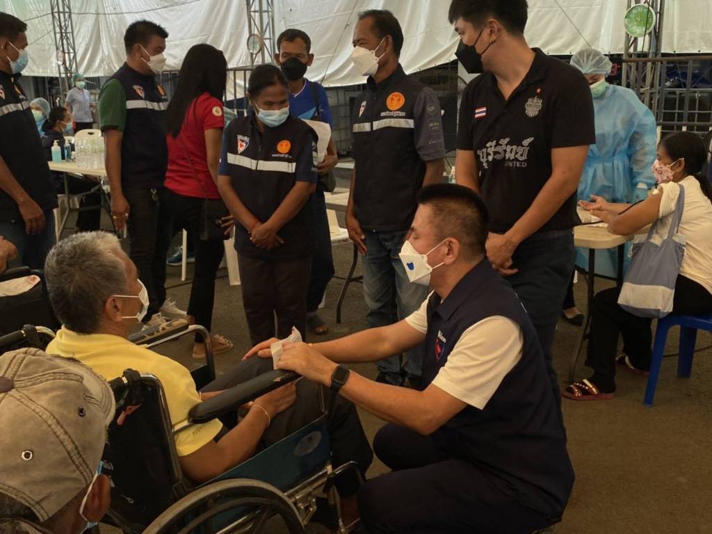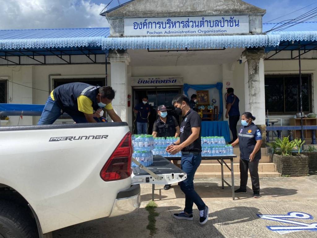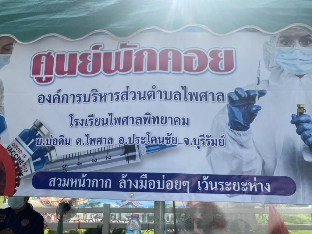 หลังจากนั้นได้ลงพื้นที่ มอบน้ำดื่ม และหน้ากากอนามัย ไปมอบให้ศูนย์กักกันเพื่อสังเกตุอาการ ณ โรงเรียนไพศาลพิทยาคม อำเภอประโคนชัย จังหวัดบุรีรัมย์ โดยมี นายวัฒน์สกล เสงี่ยมศักดิ์ สมาชิกสภาองค์การบริหารส่วนจังหวัดบุรีรัมย์ นายสมคิด สิทธิสาร ผู้อำนวยการโรงเรียนไพศาลพิทยาคม นายสุวรรณ ชื่นชมยิ่ง รองปลัดองค์การบริหารส่วนตำบลไพศาล ผู้นำชุมชน เจ้าหน้าที่ และทีม อสม. ตำบลไพศาล อำเภอประโคนชัย จังหวัดบุรีรัมย์ เป็นตัวแทนรับมอบ