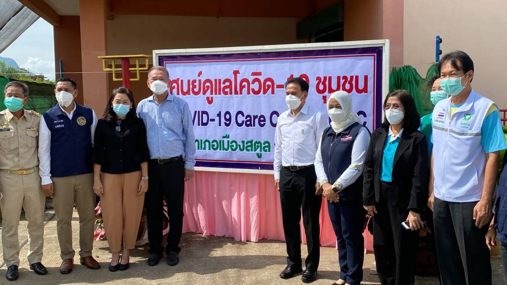 ต่อจากนั้น ส.ส.พิบูลย์ เปิดศูนย์ดูแลโควิด - 19 ชุมชน COVID - 19 center ; c c c พร้อมบริจาคน้ำดื่ม จำนวน 30 โหล , ข้าวสาร จำนวน 20 ถุง หน้ากากอนามัย จำนวน 20 กล่อง ณ ศูนย์โควิด - 19 ชุมชน สนามกีฬาฉลุง ต.ฉลุง อ.เมือง จ.สตูล