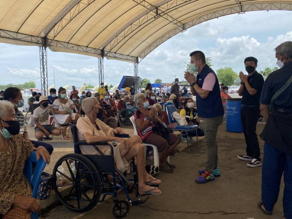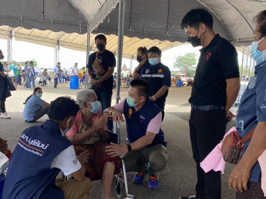 ต่อจากนั้น ได้นำน้ำดื่ม เครื่องอุปโภค บริโภค ข้าวสาร อาหารแห้ง ไปมอบให้พ่อแม่พี่น้อง ชาวตำบลหนองเต็ง อำเภอกระสัง จังหวัดบุรีรัมย์ ที่ได้รับผลกระทบจากโรคระบาดโควิค 19 และได้รับการกักตัว 14 วัน โดยมีนาย คำเคลื่อน พณะชัย นายอำเภอกระสัง และนาย ประสพ บวรรัตนกุล นายกเทศมนตรีตำบลหนองเต็ง เป็นตัวแทนรับมอบ