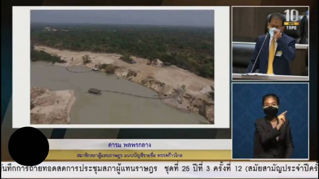 ประเด็น สุดท้ายคือกรมทรัพยากรน้ำที่ดูแลลุ่มน้ำทั้ง 25 ลุ่มน้ำ ซึ่งในภาพ เป็นแม่น้ำมูล ถ้าจะพูดถึงเรื่องการขุดทรายในแม่น้ำก็เกี่ยวกับหน่วยงานราชการกรมเจ้าท่าจังหวัด อำเภอสุวรรณภูมิ ที่ตำบลทุ่งกุลา ติดอำเภอท่าตูม มีบริษัทเอกชนไปขุด ขอขุดประมาณ 3 ไร่ แต่ขุดไปร้อยไร่ กินพื้นที่เข้าไป นี่คือการใช้ทรัพยากรที่เอาเปรียบชาวบ้าน ชาวบ้านเสียหายแต่ไม่กล้าพูด บริษัทเอกชนได้ประโยชน์ แม่น้ำก็เสียหาย แต่เอกชนรวยขึ้น