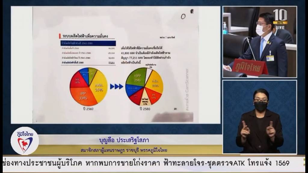 นโยบายพลังงานวันนี้ ในภาพรวมของประเทศไทยวันนี้ มีการผลิตไฟฟ้าโดยรวมก่อนโควิดแพร่ระบาด 30,000 กว่าเมกะวัตต์ ซื้อเพื่อนบ้าน จากประเทศลาว 5,000 mw (เมกะวัตต์) ประเทศมาเลเซีย 300 กว่า mw (เมกะวัตต์)