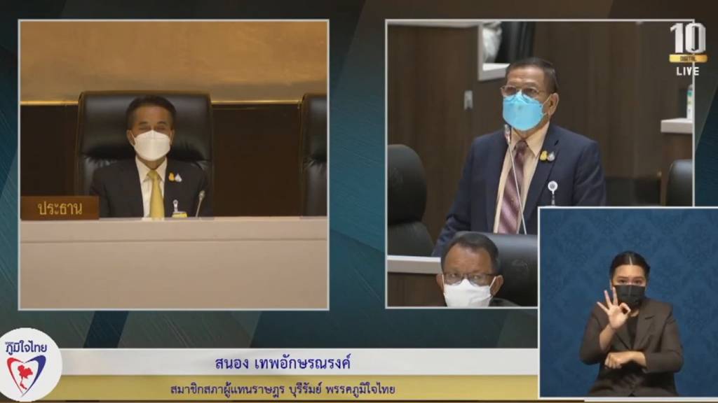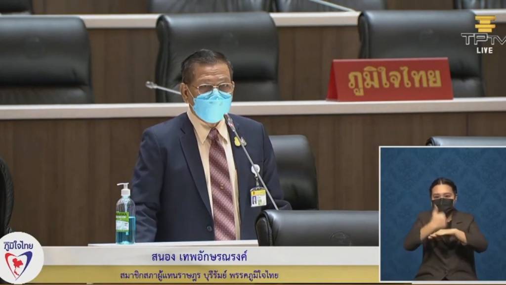 นายสนอง เทพอักษรณรงค์ ส.ส.บุรีรัมย์ พรรคภูมิใจไทย ชี้แจงเรื่องการจัดสรรวัคซีนให้กับชาวจังหวัดบุรีรัมย์ โดยได้กล่าวว่า