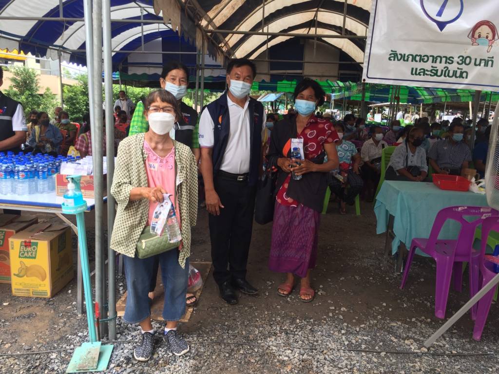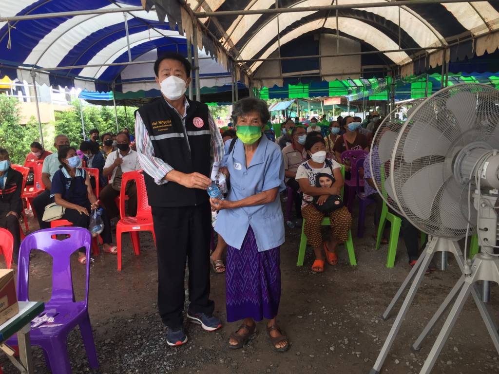 ต่อจากนั้น ส.ส.วิสิทธ์ พิทยาภรณ์ ได้ร่วมกันมอบขนม นมกล่อง และน้ำดื่ม พร้อมด้วยหน้ากากอนามัย จำนวน 300 คน ให้กับประชาชนผู้มารับวัคซีนโควิด-19 ที่โรงพยาบาล อ. เทพารักษ์