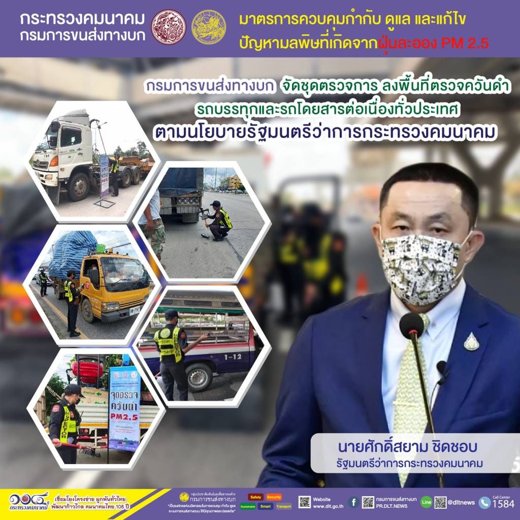 ทั้งนี้ กำชับผู้ประกอบการและเจ้าของรถทุกคันที่ถูกพ่นห้ามใช้ ต้องนำรถไปแก้ไขและนำรถเข้ารับการตรวจสภาพ ณ สำนักงานขนส่ง หากฝ่าฝืนใช้รถโดยที่มีคำสั่งห้ามใช้ มีความผิดตามกฎหมาย ด้านประชาชนสามารถมีส่วนร่วมป้องกันและแก้ไขปัญหาฝุ่นละอองขนาดเล็ก PM2.5 ด้วยการส่งภาพรถบรรทุกและรถโดยสารควันดำที่สังเกตเห็นหมายเลขทะเบียนชัดเจน ให้ศูนย์คุ้มครองผู้โดยสารและรับเรื่องร้องเรียน สายด่วน 1584 ตลอด 24 ชั่วโมง