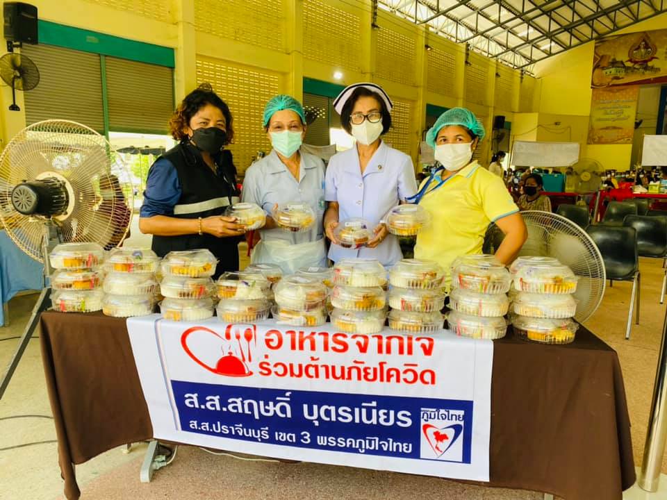 นอกจากนี้ ส.ส.สฤษดิ์ บุตรเนียร ได้ส่งกำลังใจบุคลากรทางการแพทย์ ด้วยการจัดบริการสนับสนุน อาหาร และเครื่องดื่มอย่างต่อเนื่อง ณ ที่ว่าการอำเภอกบินทร์บุรี และอำเภอนาดี จ.ปราจีนบุรี เพื่อบริการประชาชนที่เดินทางมาฉีดวัคซีน และเพื่อเติมพลังให้กับบุคลากรทางการแพทย์ที่คอยบริการประชาชนตลอดวัน