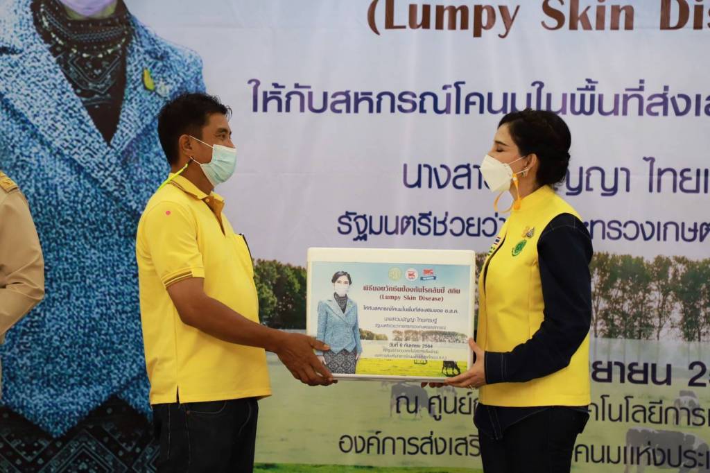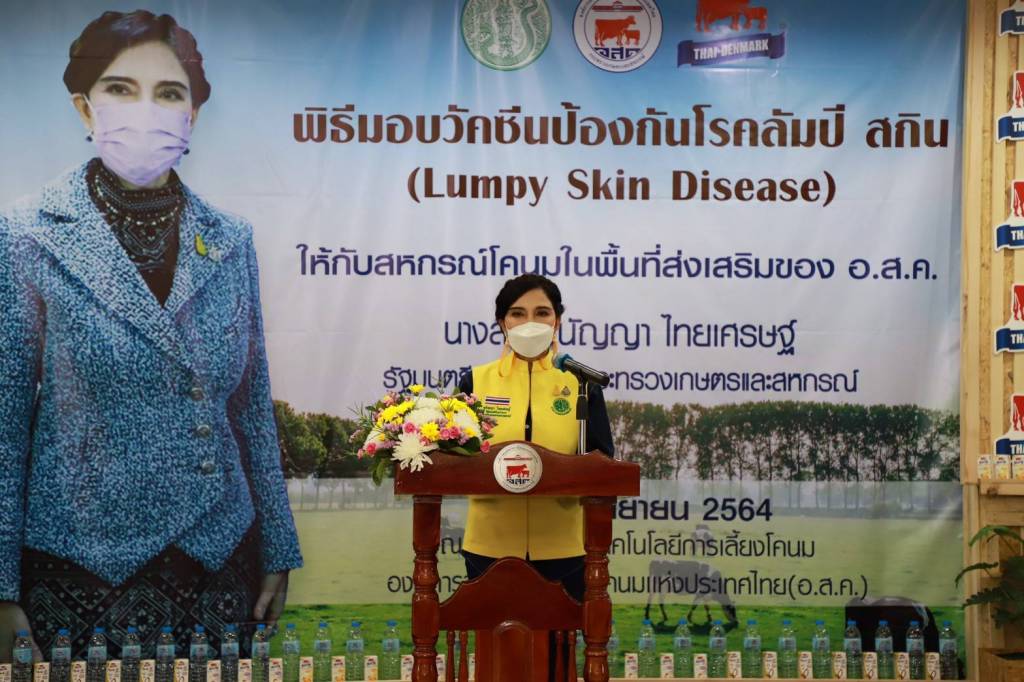 รมช.มนัญญา กล่าวด้วยว่า "ตนในฐานะผู้ดูแลกำกับ อ.ส.ค. มีความห่วงใยต่อสถานการณ์การแพร่ระบาดโรคลัมปี สกินในฟาร์มโคนมของเกษตรกรอย่างมาก ที่ผ่านมาได้กำชับให้ อ.ส.ค. และหน่วยงานที่เกี่ยวข้องเข้มงวด กวดขันและจัดส่งเจ้าหน้าที่ลงพื้นที่เพื่อเฝ้าระวังและติดตามสถานการณ์อย่างใกล้ชิดในการป้องกันไม่ให้เกิดการแพร่ระบาดของโรคลัมปี สกินในพื้นที่การเลี้ยงโคนมทั้งภายใต้การดูแลของ อ.ส.ค.และฟาร์มทั่วไป เพื่อไม่ให้เกษตรกรมีความเดือดร้อนและได้รับความเสียหายจากสัตว์ที่ล้มตาย ล่าสุดมติคณะรัฐมนตรีก็ได้อนุมัติงบประมาณรายจ่ายประจําปีงบประมาณ 64 งบฯกลาง รายการเงินสํารองจ่ายเพื่อกรณีฉุกเฉินหรือจําเป็น เพื่อควบคุมโรคลัมปิ สกิน ในโค-กระบือ วงเงินงบประมาณจํานวน 684,218,000 บาท ทราบว่ากรมปศุสัตว์ได้นำเข้าวัคซีนลัมปี สกิน ระหว่างเดือนพฤษภาคม-มิถุนายน 2564 แล้ว รวม 360,000 โดส และเมื่อวันที่ 5 กรกฎาคม 2564 อีกจำนวน 137,000 โดส จากแผนที่เตรียมจัดสรรทั้งหมด 5 ล้านโดส ซึ่งหากวัคซีนได้รับการจัดสรรไปยังเกษตรกร และสหกรณ์ฯ อย่างทั่วถึงก็จะช่วยให้การแพร่ระบาดค่อยๆ ลดลงอย่างแน่นอน ทุกวันนี้ประชาชนมีความเดือดร้อนจากปัญหาการแพร่ระบาดของโรคติดเชื้อไวรัสโคโรนา 2019 ((COVID-19) อยู่แล้ว กระทรวงเกษตรฯไม่อยากให้ปัญหาการแพร่ระบาดของโรคลัมปี สกินในโคนมเข้ามาซ้ำเติมความเดือดร้อนของเกษตรกรซ้ำเข้าไปอีก การส่งมอบวัคซีคจำนวน 2 หมื่นโดสในวันนี้จึงถือเป็นการส่งมอบกำลังใจให้กับเกษตรกรผู้เลี้ยงโคนม และหยุดการแพร่ระบาดโรคลัมปี สกิน ในโคนม"