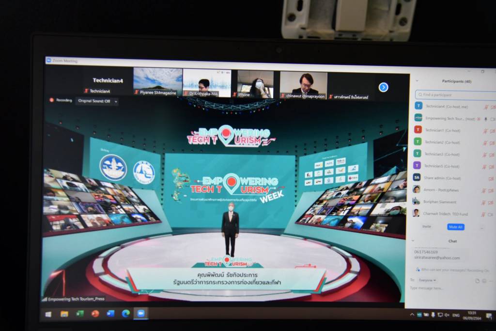 วันที่ 6 กันยายน 2564 นาย พิพัฒน์ รัชกิจประการ รัฐมนตรีว่าการกระทรวงการท่องเที่ยวและกีฬา เป็นประธานเปิดงาน “Empowering Tech Tourism week Virtual Event” ที่จะพาผู้ประกอบการท่องเที่ยวได้พบกับนวัตกรรมที่ตรงใจ มุ่งหวังเร่งฟื้นฟูอุตสาหกรรมการท่องเที่ยวไทย ภายใต้ “โครงการพัฒนาศักยภาพผู้ประกอบการท่องเที่ยวยุคดิจิทัล” ส่งเสริมและสร้างโอกาสให้อุตสาหกรรมการท่องเที่ยวไทยกลับมาแข็งแรงอีกครั้ง โดยความร่วมมือจาก ผู้ประกอบการอุตสาหกรรมการท่องเที่ยว ผู้พัฒนานวัตกรรม และนักลงทุน ที่เป็น 3 ภาคส่วนสำคัญที่จะร่วมสร้างระบบนิเวศทางธุรกิจให้เกิดขึ้นกับอุตสาหกรรมการท่องเที่ยวไทยเติบโตได้อย่างยั่งยืนต่อไป พร้อมด้วย นายยุทธศักดิ์ สุภสร ผู้ว่าการการท่องเที่ยวแห่งประเทศไทย ร่วมเสวนาในหัวข้อ “แนวทางการสนับสนุนนวัตกรรมด้าน Travel Tech เพื่อผู้ประกอบการการท่องเที่ยว” ร่วมกับตัวแทนจากหน่วยงานสนับสนุนโครงการฯ ผ่านการถ่ายทอดสดผ่านระบบออนไลน์