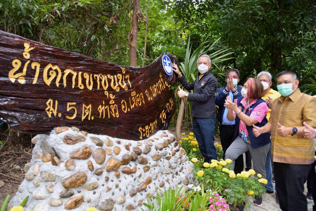 หลังจากนั้นช่วงบ่าย คณะได้เดินทางไปยัง หมู่ที่ 5 ต.ท่างิ้ว อ.เมือง จ.นครศรีธรรมราช ร่วมเปิดป้าย “น้ำตกขุนน้ำ” แห่งแรกและแห่งเดียวของอำเภอเมือง ให้เป็นแหล่งท่องเที่ยวพักผ่อนตามธรรมชาติ ของชาวจังหวัดนครศรีธรรมราช และใกล้เคียง ได้มาท่องเที่ยวอีกด้วย โดยมีนายสายัณห์ ยุติธรรม ส.ส.จังหวัดนครศรีธรรมราช พรรคพลังประชารัฐ นายอำเภอเมือง เจ้าหน้าที่อุทยานแห่งชาติเขาหลวง ผู้นำท้องถิ่น/ท้องที่ อสม.และผู้ที่เกี่ยวข้องให้การต้อนรับ