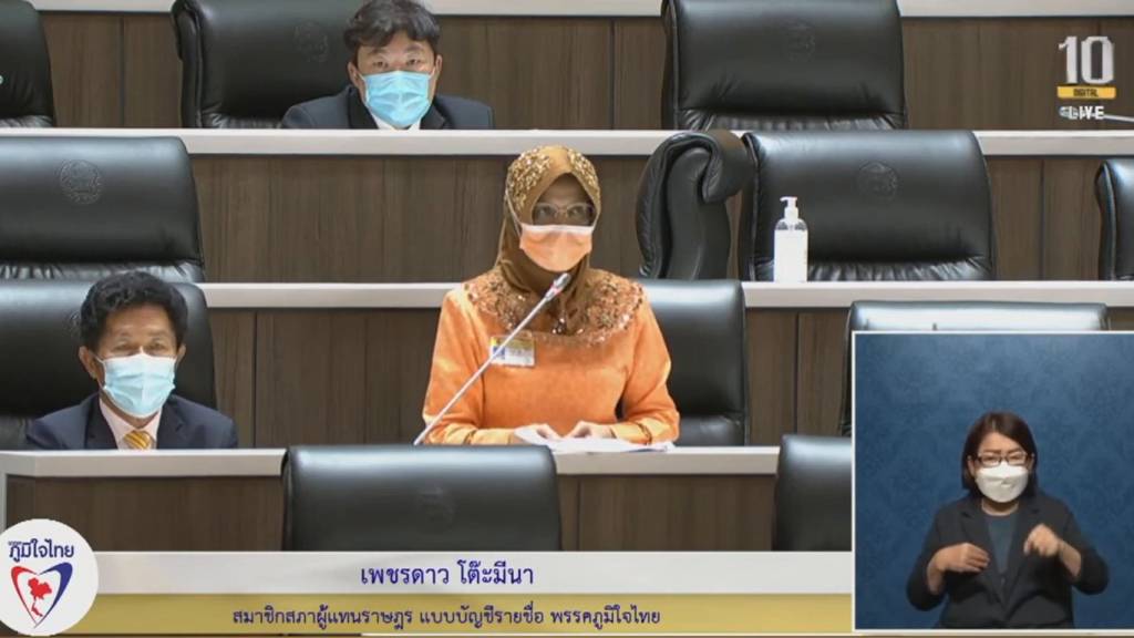 แพทย์หญิงเพชรดาว โต๊ะมีนา สมาชิกสภาผู้แทนราษฎรบัญชีรายชื่อ พรรคภูมิใจไทย อภิปรายเรื่องพระราชกำหนดให้อำนาจกระทรวงการคลังกู้เงินเพื่อแก้ไขปัญหาเศรษฐกิจ และสังคมจากการระบาดของโรคติดเชื้อไวรัสโคโรนา 2019 เพิ่มเติม พ.ศ.2564